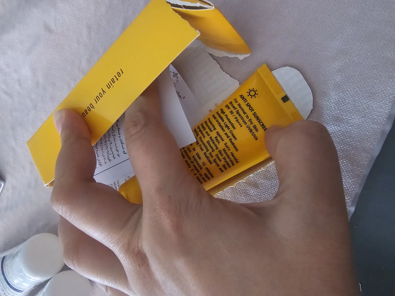 2کلمه ANTI spot sunscreen روی جعبه بود روی خود قوطی نبود