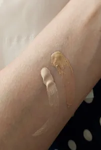 در مورد رنگ محصول، من پوستم روشن هست ولی همیشه برا اینکه روح نشم، دومین شماره از هر کرمپودر رو انتخاب میکنم که در مورد این کرم خرید اشتباهی داشتم و شماره ۲ یعنی نچرال بژ خیلی برام تیره بود و مجبور شدم شماره ۱ (لایت)رو هم بخرم و با هم ترکیب کنم. در عکسی که گذاشتم تست هر دو رنگ این ضد آفتاب روی دستم هست قبل و بعد از فید کردن. در مورد کیفیت، پوشانندگیش متوسطه و برق نمیندازه اما متاسفانه برای من ایجاد جوش کرد که با استفاده از تونر و ژل شستشو هم رفع نشد چون ساعات طولانی روی صورتم میمونه این کرم در محل کار