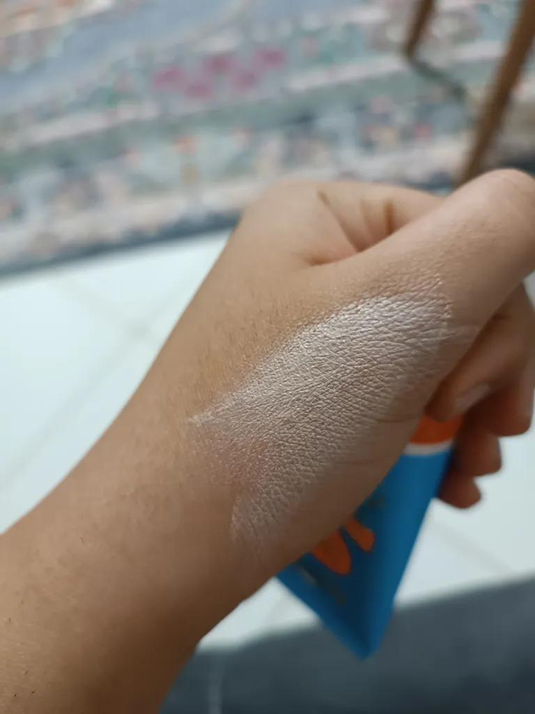 اصلا جذب پوست نمیشه و روش میمونه همینطوری، یه ذره آب بخوره کامل شسته میشه و روی پوست حرکت میکنه، رنگش با پوست فرقی نداره نمیدونم چرا میگن جای کرم پودر میشه استفاده کرد چون نه پوشانندگی داره نه رنگش متفاوته، بوش خوبه، قیمتش هم تو تخفیف عالی، نمیدونم اثر ضد آفتابیش چقدره چون فعلا آفتاب شدید نیست.کوچولو هم هست نمیدونم واقعا ۵۰ میله یا نه. چرب نیست. حساسیت هم نداد