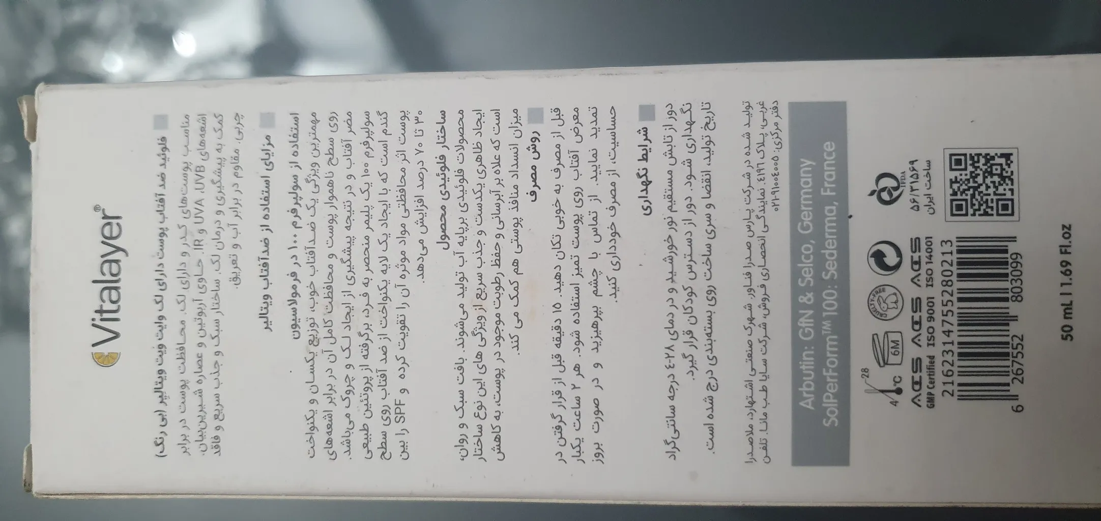 نظر و تجربه خرید کرم ضد آفتاب رنگی ویتالیر، SPF 50،در تاریخ ۰۲ خرداد ۱۴۰۴