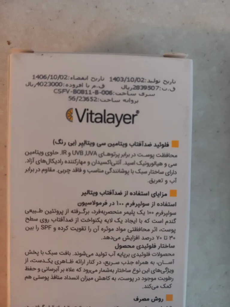 نظر و تجربه خرید فلوئید ضد آفتاب بیرنگ ویتالیر، spf 50،در تاریخ ۳۰ مهر ۱۴۰۴