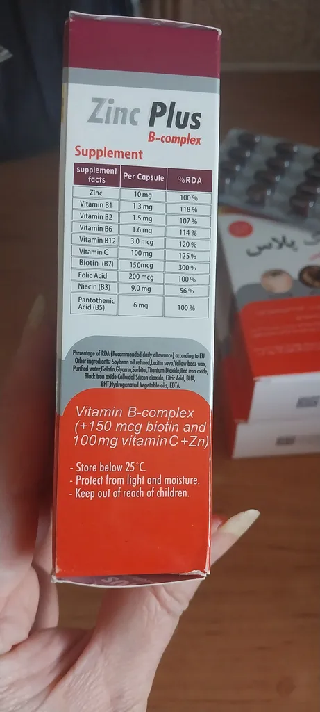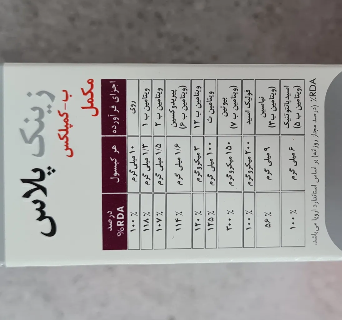 خیلی زودتر از موعد به نسبت بقیه خریدهام ارسال شد و تاریخ انقضا هم ۶ ماه دیگه هست. هر کپسول ۱۰ میلی گرم روی (زینک) داره و شامل چند ویتامین دیگه و فولیک اسید هست