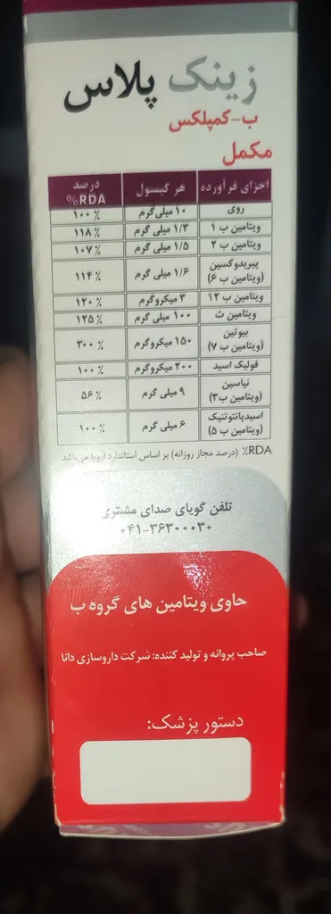 نظر و تجربه خرید کپسول زینک پلاس 10 میلی گرمی داروسازی دانا بسته 60 عددیدر تاریخ ۲۶ اردیبهشت ۱۴۰۴