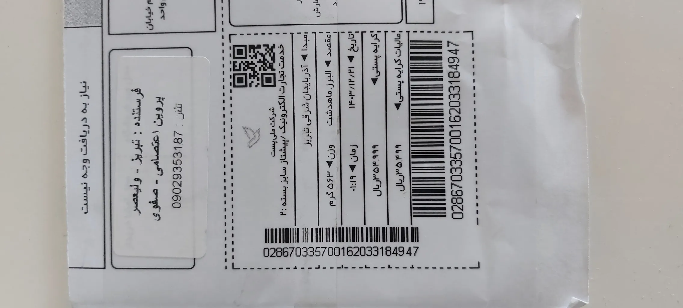 و اینکه روی بسته زده شده هزینه کرایه ۳۲۲۰۰ درصورتیکه ما باید ۷۰۰۰۰تومن پرداخت کنیم