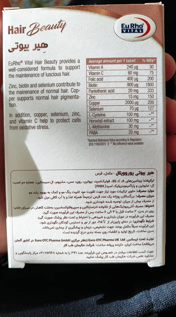 نظر و تجربه خرید قرص هیر بیوتی یوروویتال بسته 30 عددیدر تاریخ ۲۷ تیر ۱۴۰۴