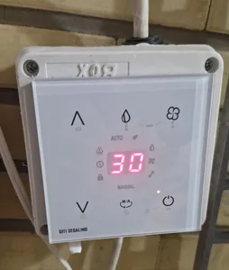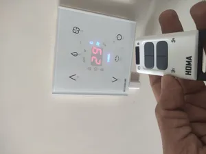 من تو نگاه اول ترمینال اتصال برقش ترسوند منو انتظار چیز قوی تری رو داشتم نصبش که خب فرقی با کلید معمولی نداشت و این که دماسنجش بیرونیه و یخورده بزرگه و موقعی که خواستم جا بزنم دیدم یا باید کلید رو بیرون تر از دیوار نصب کنم یا باید قاب دور دماسنج رو در بیارم که جا بشه بعد دو سال بلاخره اروشنش کردم ۲۰روزه دارم استفاده میکنم تایمرش دو حالته و پیوسته هست که خیلی خوبه یعنی شما میگی ۱۰ دیقه روشن ۱۰دیقه خاموش باشه ولی بدیش اینه که بیشتر از ۹۰ دیقه نمیشه با ریموت میشه حالت های مختلف رو از قبل براش تعریف کنی و با زدن یه دکمه از ریموت اون کارو انجام میده مثلا دما روی ۲۰ درجه دور تند پمپ روشنرو با یه کلید و با کلید بعدی دما ۲۶ درجه دورکند پمپ خاموش تنها ایرادی که از زاهرش میشه گرفت نشت نور از کنار علایم کلیده که فکر کنم تو نمونه مشکی وجود نداشته باشهوداخل رنگ سفید هم طبیعیه