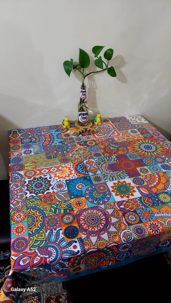 بعد که بازش کردم از رومیزی قبلی که خریده بودم بزرگتر بود و یجوری میشه گف کل میز رو پوشنده. 👍🏻