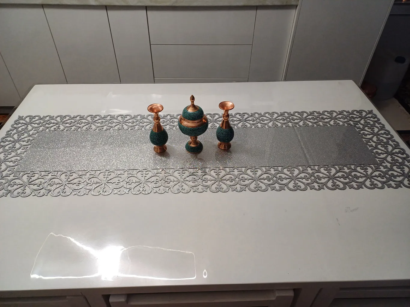 محمود ابوطالبی : رانر ؛ برای میز عذاخوری هشت نفره گرفتم. سایزش دقیقا همون چیزیه که توی توضیحات نوشته شده. تمیز و با کیفیته. یکی دو ساعت که از نایلون در میاری چروکهاش صاف میشه. اکلیل هاش اصلا نمیریزه