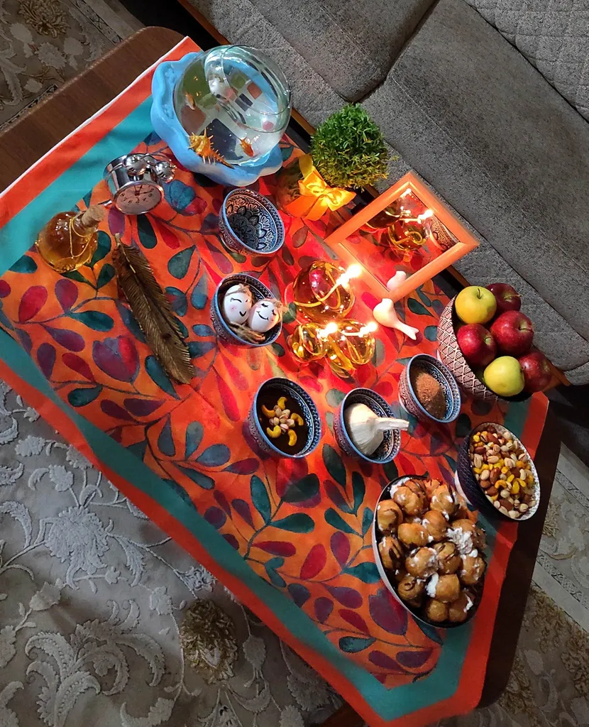 رویش برتر شجاع : شیک زیبا ؛ من رنگ زرشکی رو انتخاب کردم که در کنار زمینه طلایی میزم و گل طلایی خود رانر، تضاد بسیار دلربایی رو ایجاد کرده