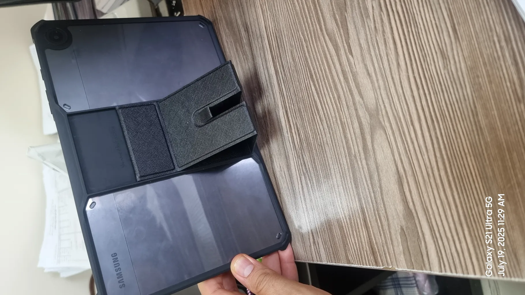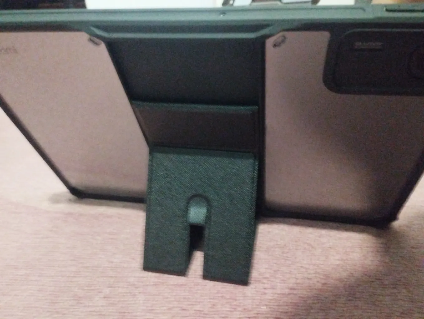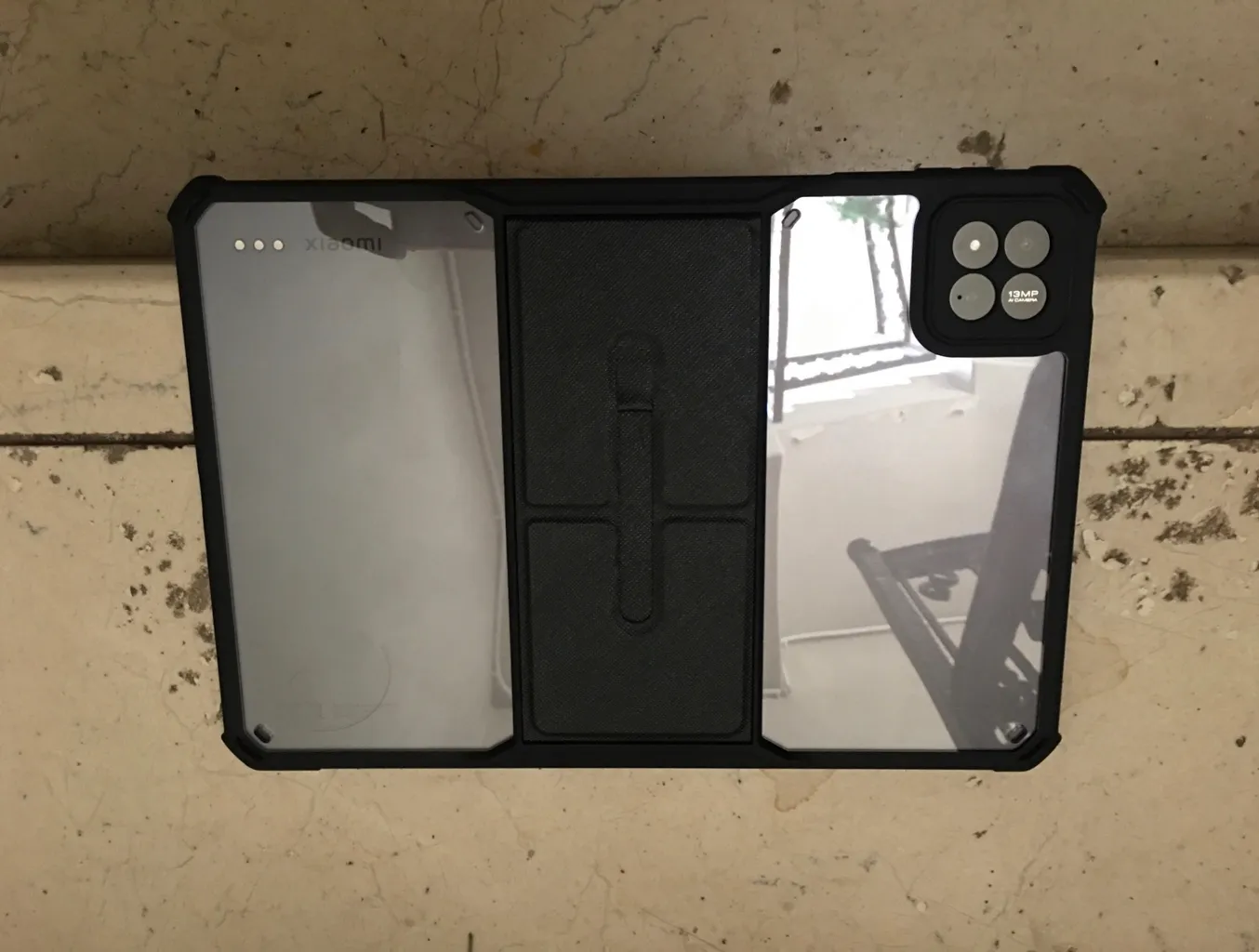 حالا اگه بخوام به صورت کلی راجع به مزایا و معایبش بگم، دور و بر تبلت رو پوشش میده و حاشیه اش برآمدگی جزئی هم داره که اگه تبلت رو از طرف صفحه نمایشش روی سطحی قرار بدید، ۲-۳ میلی متری از سطح فاصله پیدا میکنه. قسمت دوربینشم به همین صورته. دسترسی به پورت و دکمه ها و حسگر اثر انگشت راحت و بدون مشکله. من قلم تهیه نکردم ولی فرورفتگی مربوط به قلم هم داره. وزنشم نکردم ولی به نظرم نمیشه گفت سنگینه. تنها ایرادی که من بهش می گیرم اینه که از ۴ ضلع تبلت، دو ضلعش کاملا لبه متصل به صفحه نمایش تبلت رو نپوشونده ولی حقیقتش چیز مهمی نیست، یا حداقل برای من مهم نیست. صرفا از لحاظ بصری یک مقدار مشکل ایجاد میکنه، از لحاظ محافظت نه