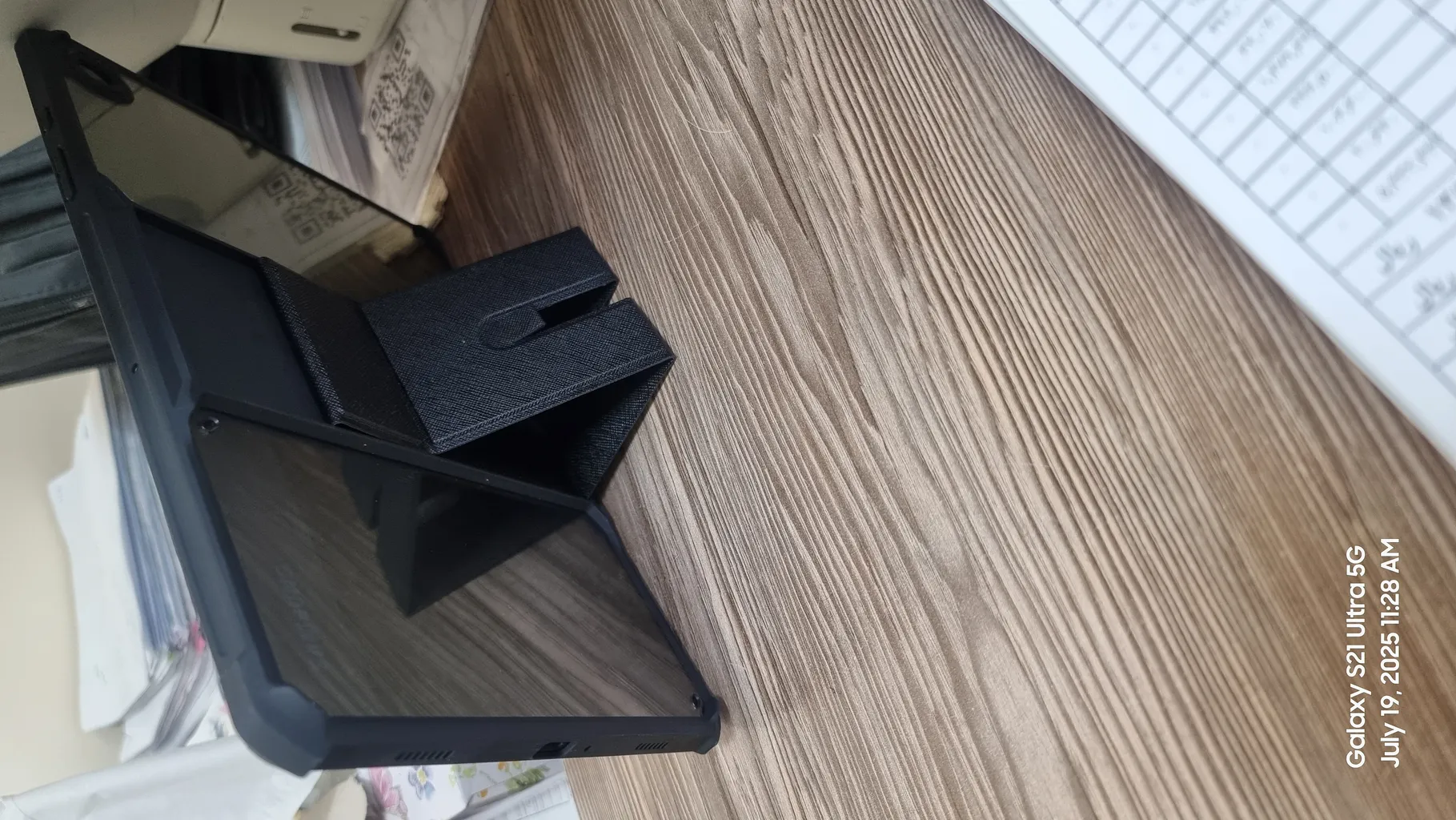 پشتش ب صورت مگنتی پایه میشه و ب صورت عمودی میتونید تبلت رو ببینید ب صورت ایستاده اصلا نمیشه و میوفته