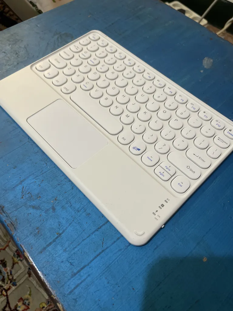 - ⬤ کیبورد بلوتوثی : این نوع کیبوردها به راحتی با تبلتهای مختلف از طریق بلوتوث متصل میشوند. خریداران به اتصال سریع و پایدار این کیبوردها اشاره کردند و از عدم وجود تاخیر در تایپ ابراز رضایت کردند. عمر باتری طولانی این کیبوردها یکی از مزایای بارز آنهاست که برخی کاربران تا ۴ ماه بدون نیاز به شارژ مجدد از آنها استفاده کردهاند. همچنین، طراحی سبک و جمعوجور این کیبوردها باعث میشود که به راحتی قابل حمل باشند. با این حال، برخی کاربران از عدم نمایش درصد شارژ و نیاز به شارژ مجدد در زمانهای نامناسب ابراز نارضایتی کردند. همچنین، برخی از خریداران به عدم وجود حروف فارسی بر روی کیبورد اشاره کردند که میتواند برای برخی کاربران مشکلساز باشد.