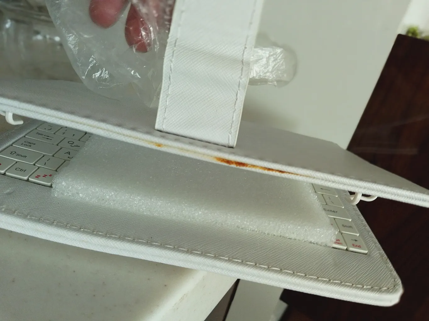 - ⬤ کیف یا کاور کیبورد : این لوازم جانبی به عنوان محافظی برای کیبورد و تبلت عمل میکند و به کاربران این امکان را میدهد که از آسیبهای فیزیکی جلوگیری کنند. خریداران از طراحی زیبا و قابلیت حمل آسان این کیفها ابراز رضایت کردند و به این نکته اشاره کردند که این کیفها به خوبی از کیبورد در برابر خط و خش و ضربه محافظت میکنند. همچنین، برخی کاربران از وجود جیبهای اضافی برای نگهداری لوازم جانبی دیگر نیز قدردانی کردند.