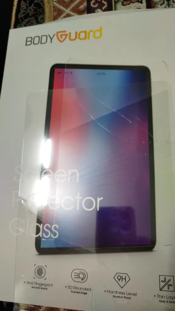عطا باژیان : صفحه محافظ ؛ با سلام،جنس خوب و خیلی راحت رو صفحه تبلت کیپ شد ،بدون وجود یک ذره گرفتن حباب ،خیلی راحت چسپبد،در ضمن داخل کاور پد الکلی و دستمال برای برای تمیز کاری و چسپ برا برداشتن گرد و غبار روی صفحه وجود داره...