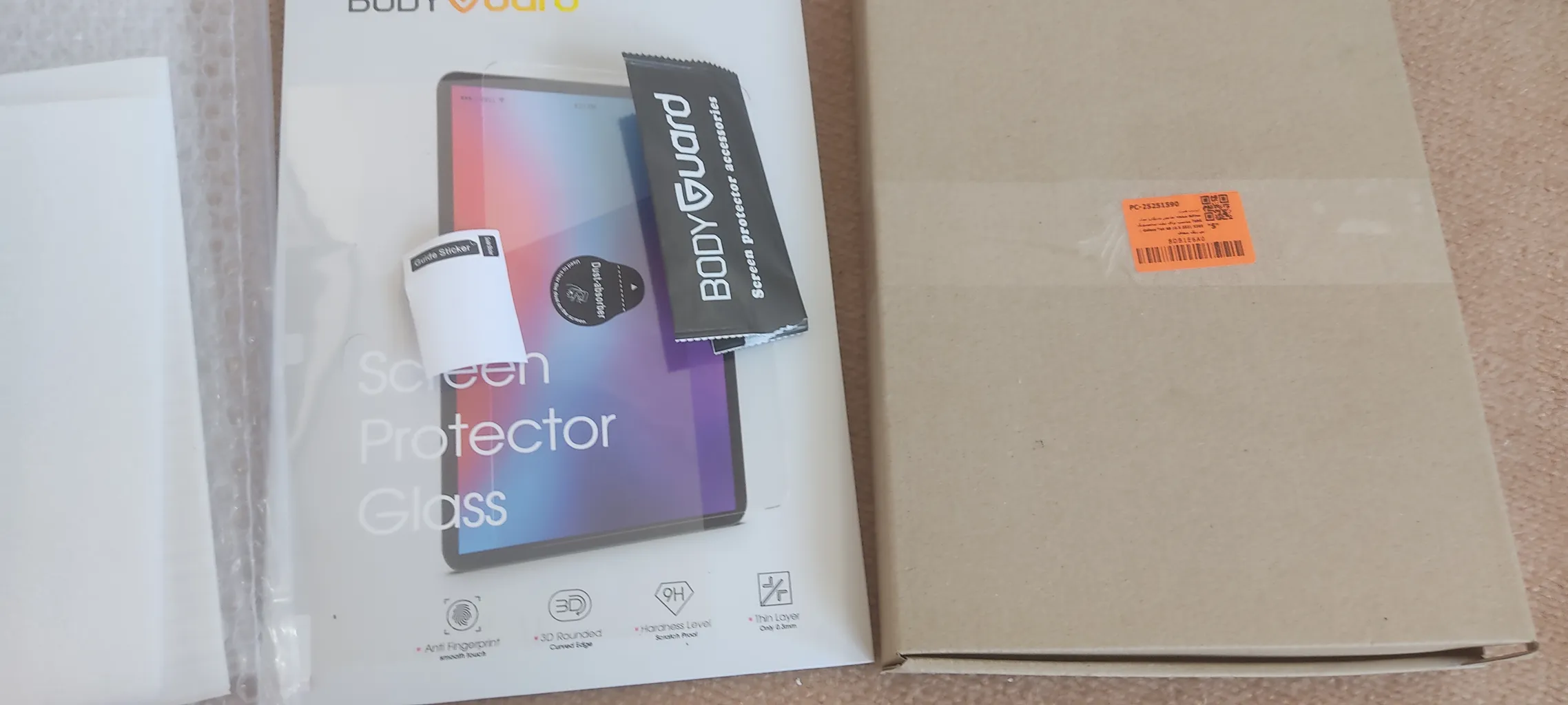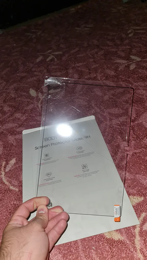 عطا باژیان : صفحه محافظ ؛ با سلام،جنس خوب و خیلی راحت رو صفحه تبلت کیپ شد ،بدون وجود یک ذره گرفتن حباب ،خیلی راحت چسپبد،در ضمن داخل کاور پد الکلی و دستمال برای برای تمیز کاری و چسپ برا برداشتن گرد و غبار روی صفحه وجود داره...