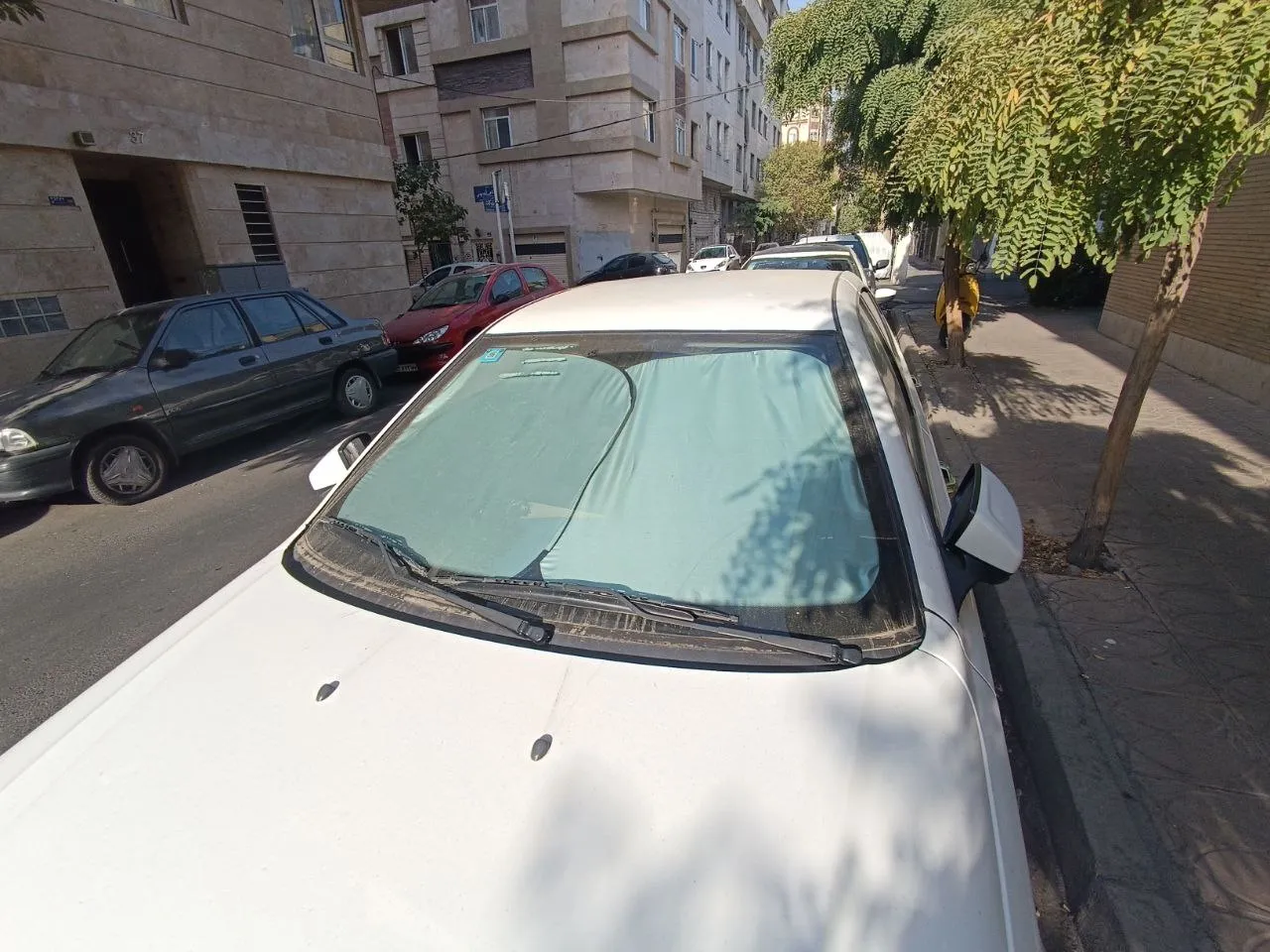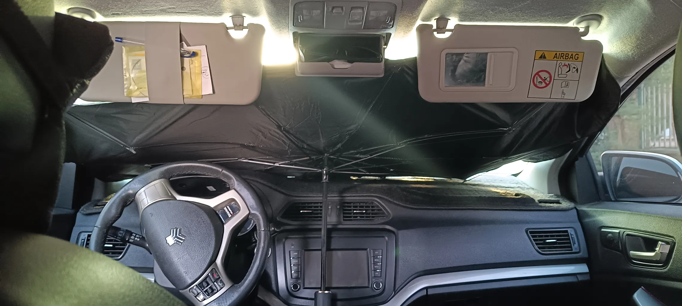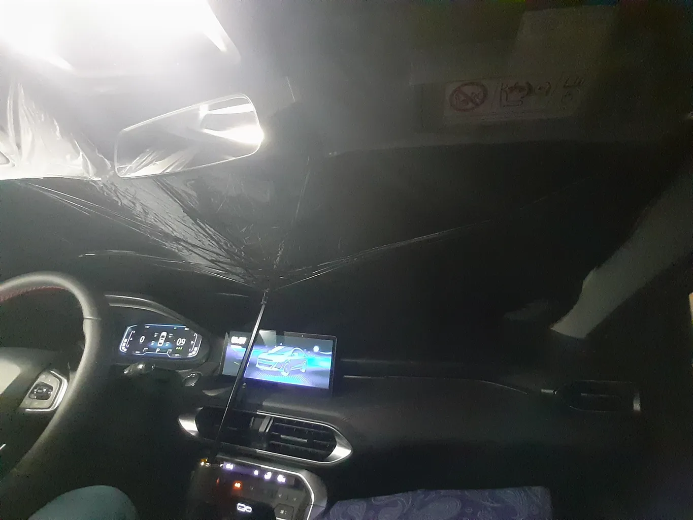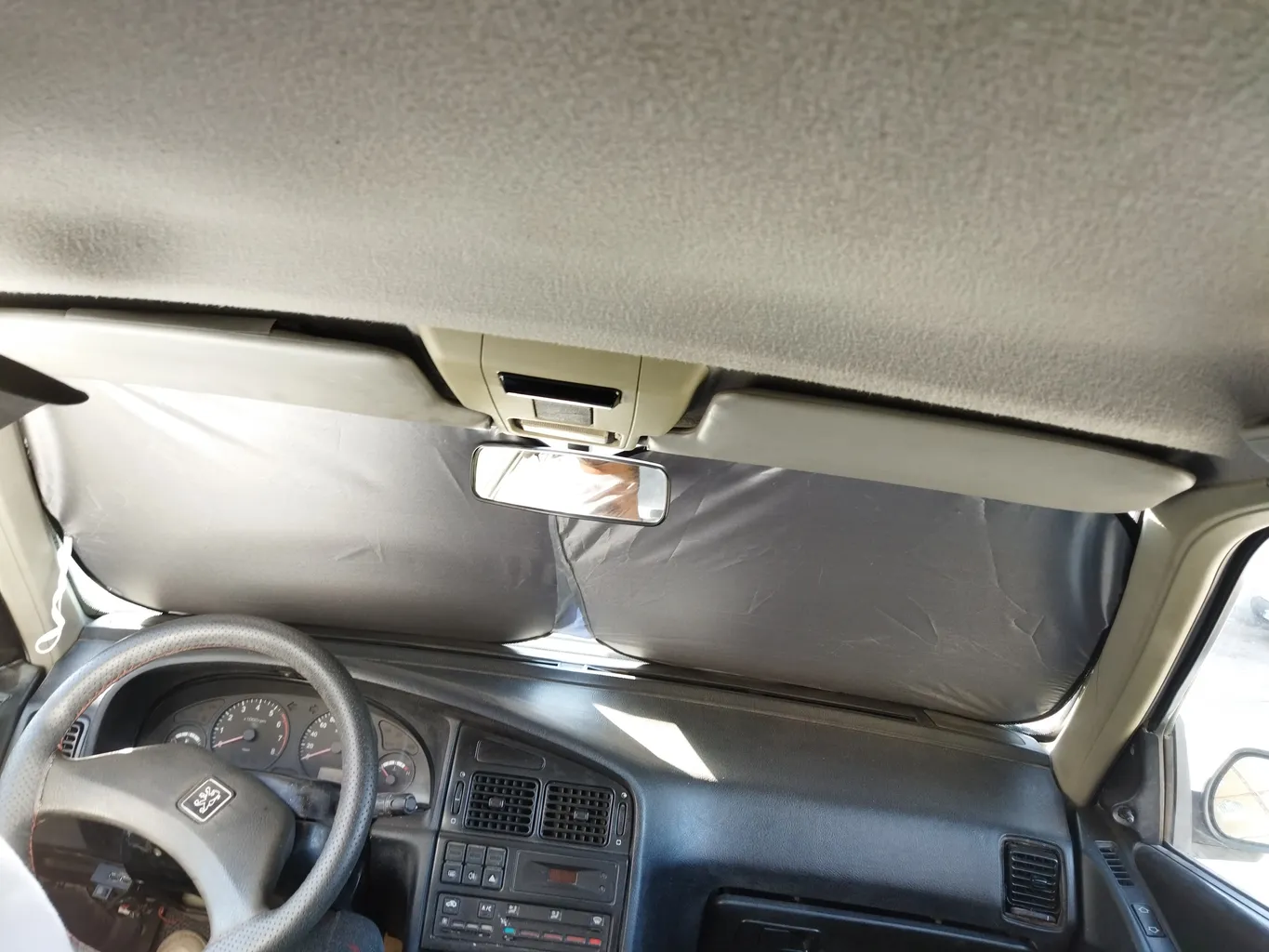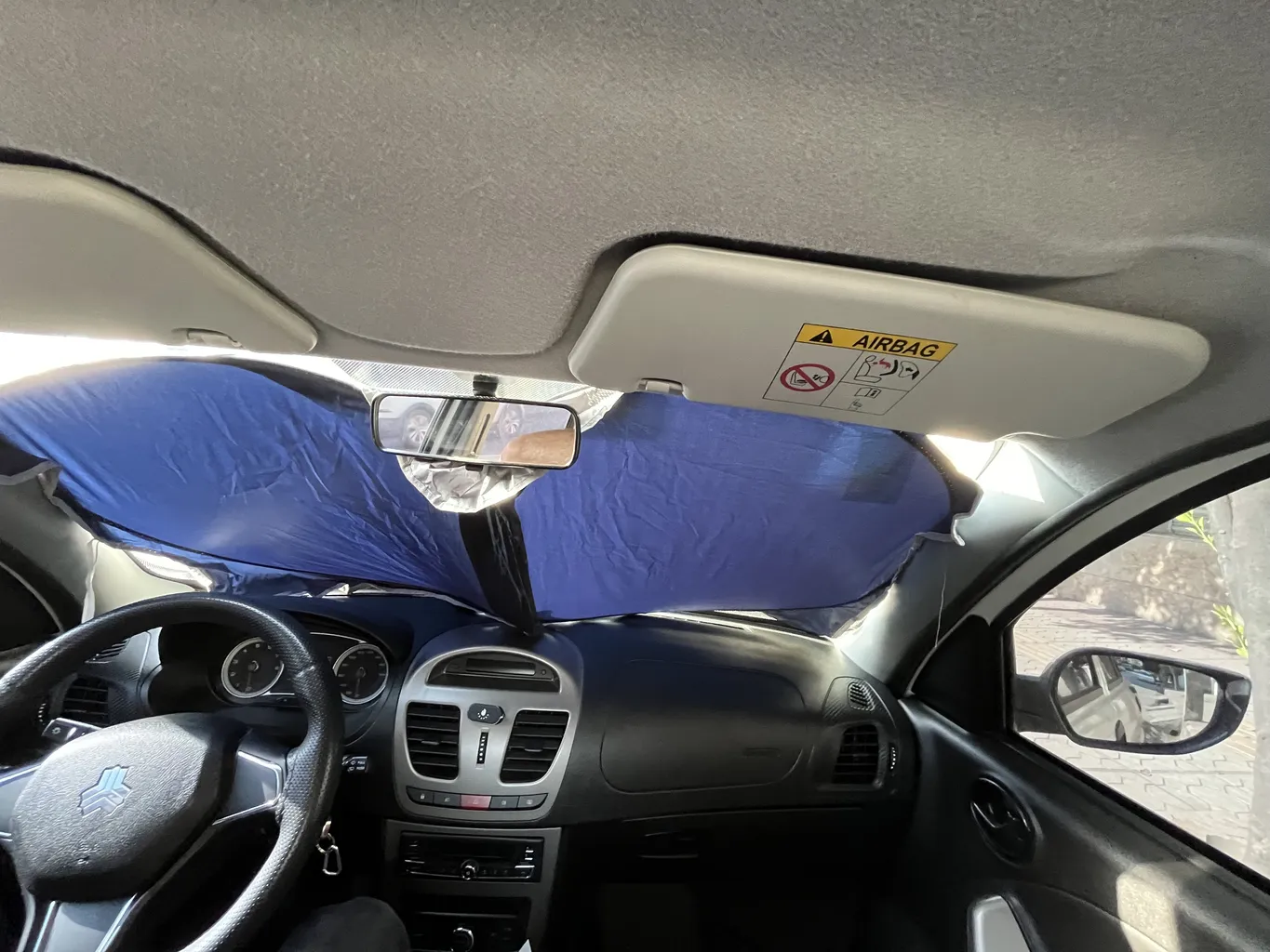 این آفتابگیر یکی از بزرگترین هاست ولی بازم نتونست شیشه جلو ۲۰۶ رو کامل بپوشونه.انگار که هیچ آفتابگیری اندازه ش نیست