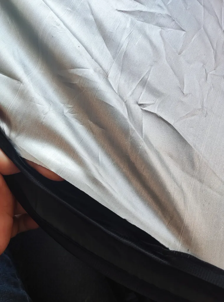 اولش فکر میکردم نازک تر باشه ولی اصلا اینطور نیست و ضخامتش خیلی عالیه و خوب جلوی آفتاب رو میگره و نمیذاره ماشین و صندلی ها داغ بشن