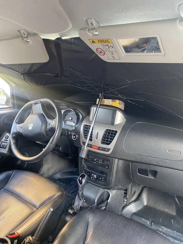 آرتا زادابراهیمی : خوبه- ۲۰۶ ؛ من برای ۲۰۶خریدم، یک مقدار باز کردن و بستَنِش سخته چون اول باید ببری پشت فرمون و اونجا تازه چترش رو باز کنی، اما خوبیش اینه شیشه رو کاملا پوشش میده. مدل آفتابگیرهای عینکی و مستطیلی اصلا برای ۲۰۶مناسب نیستن، چون شیشه جلو بلند هست پوشش نمیدن و میفتن رو فرمون و داشبورد، اما این مدل بخاطر بزرگ بودنش، فیتِ شیشه میشه. اندازه ش یک مقدار بزرگه، به نظر برای ماشین های شاسی بلند هم مناسبه، کیفیت خوبی داره، در کل راضیم ازش. از داخل مشکی و از بیرون نقره ایه