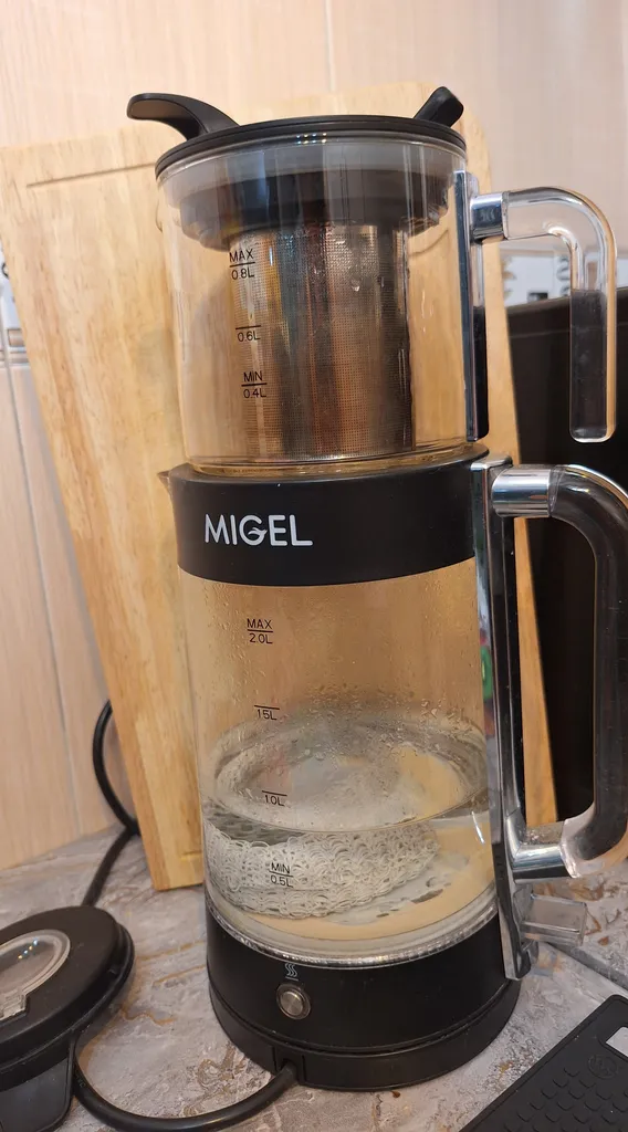 - ⬤ نورپردازی داخلی : وجود نورپردازی زیبا در داخل کتری، به جذابیت دستگاه افزوده و خریداران به آن اشاره کردهاند. این ویژگی به زیبایی و کارایی دستگاه کمک میکند و استفاده از آن را لذتبخشتر میکند.