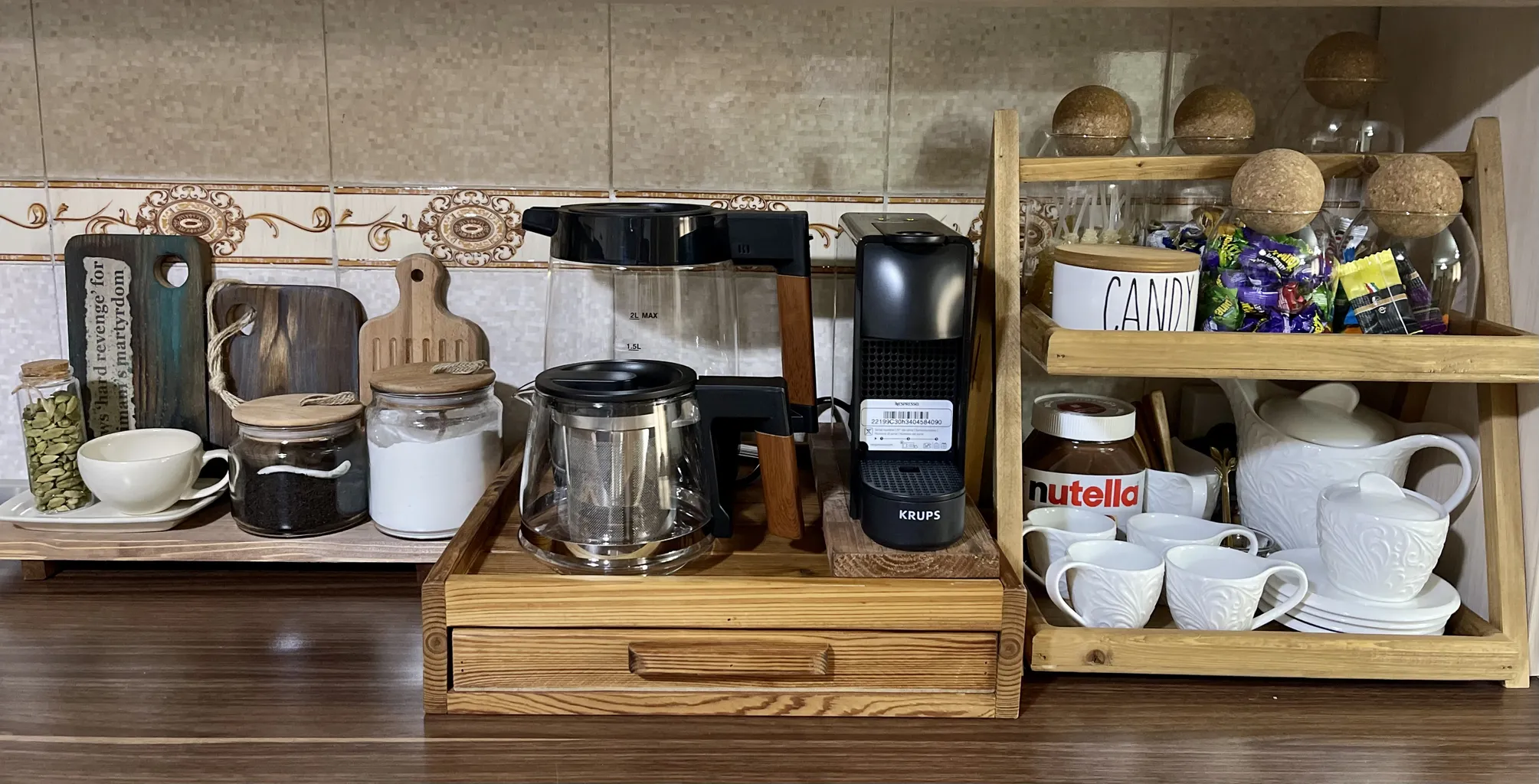 - ⬤ سینی : سینی برای قرار دادن قوری و کتری به صورت منظم و جلوگیری از ریختن آب استفاده میشود. خریداران به طراحی و کیفیت سینیها توجه دارند. بسیاری از آنها از سینیهای با طراحی زیبا و مقاوم ابراز رضایت کردهاند که به زیبایی آشپزخانه کمک میکند. با این حال، برخی از خریداران به عدم وجود سینی در برخی مدلها و مشکلاتی در تمیز کردن آنها اشاره کردهاند.
