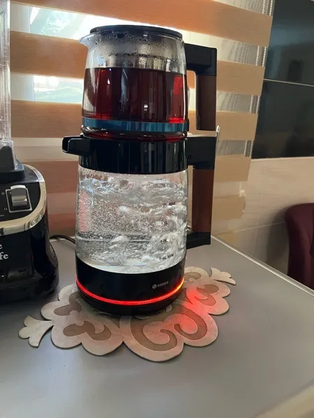 - ⬤ چای سازهای برقی : این نوع چای سازها به دلیل سرعت و کارایی بالا بسیار محبوب هستند. خریداران به سرعت جوش آمدن آب (معمولاً در کمتر از 5 دقیقه) و قابلیت گرم نگهداشتن چای اشاره کردهاند. بسیاری از آنها از طراحی مدرن و زیبای این دستگاهها راضی هستند و به راحتی استفاده از آنها اشاره میکنند. همچنین، برخی مدلها دارای صفحه نمایش LED برای نمایش دما و زمان هستند که به کاربر کمک میکند تا به راحتی تنظیمات را مشاهده کند. با این حال، برخی از خریداران از صدای زیاد هنگام جوش آمدن آب و وزن بالای کتری ابراز نارضایتی کردهاند. همچنین، برخی از مدلها به دلیل استفاده از پلاستیک بیکیفیت، طعم و بوی نامطلوبی به چای میدهند.