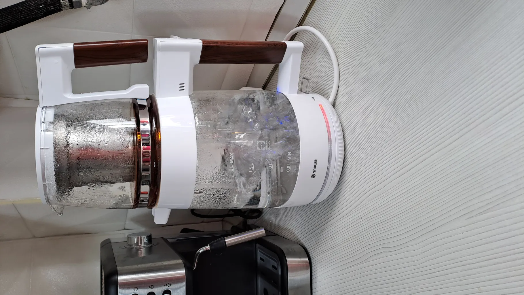 - ⬤ نورپردازی داخلی : وجود نورپردازی زیبا در داخل کتری، به جذابیت دستگاه افزوده و خریداران به آن اشاره کردهاند. این ویژگی به زیبایی و کارایی دستگاه کمک میکند و استفاده از آن را لذتبخشتر میکند.