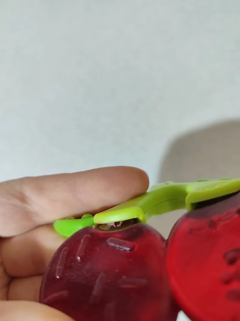 بوی نفت و پلاستیک بی کیفیت میده و من بخاطر مایعی بودن خریدم ولی اصلا مایعی نیست و یه تیکه پلاستیک سفته که پسرم به دهانش که رسید حالش بد شد و خیلی بدش اومد انداختمش کنار.و گیلاسهاشم به راحتی کنده میشه از برگاش و خطر داره به نظرم