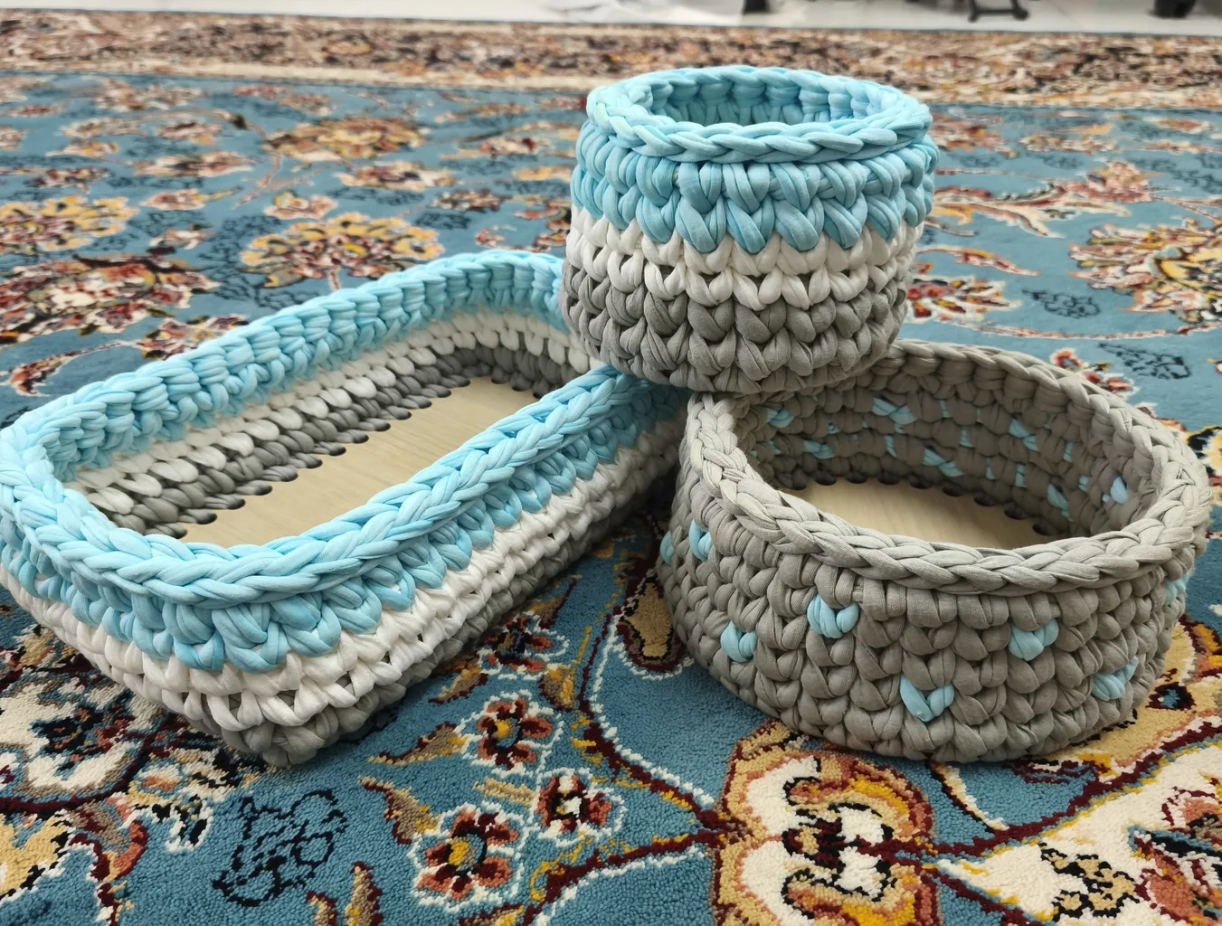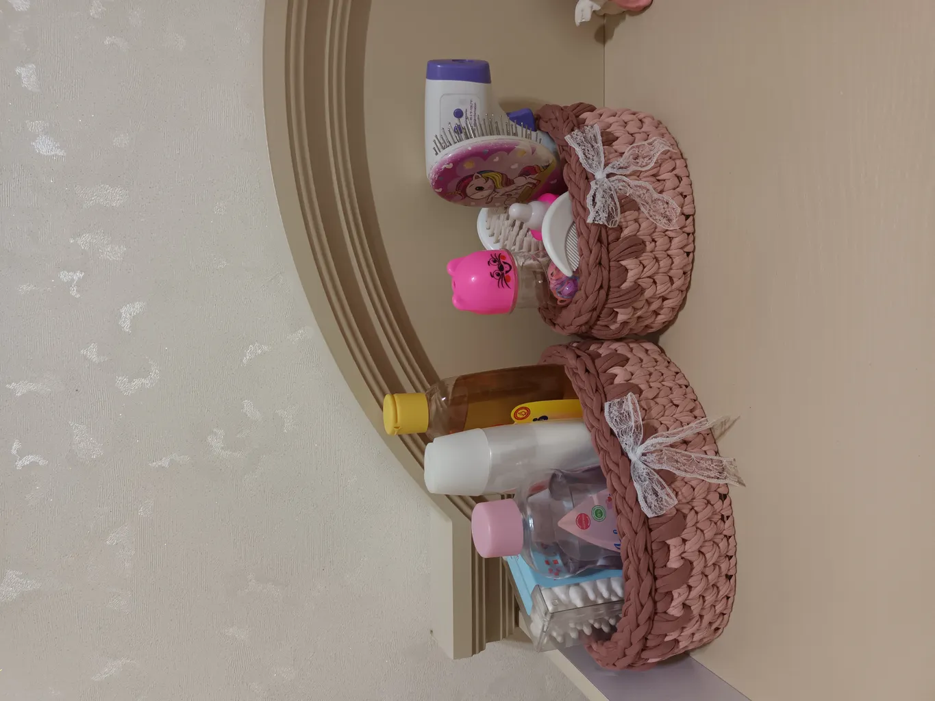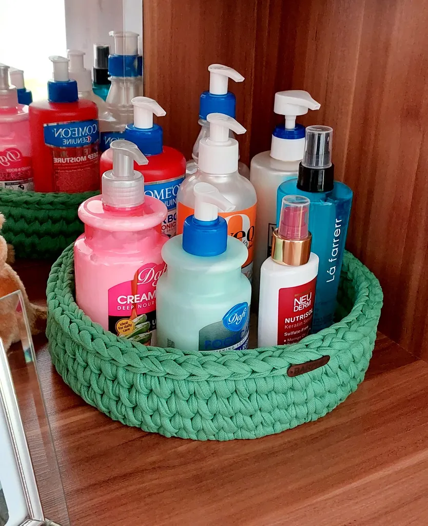 خریدار بدون نام : سبد قلاب بافی تریکو ؛ من برای نظم دادن به میز لوازم آرایشی تهیه کردم