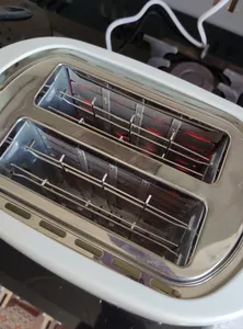 - ⬤ دریچه بزرگ : دریچه بزرگ در برخی توسترها به کاربران این امکان را میدهد که نانهای بزرگتر یا نانهای با بافت نرمتر را به راحتی تست کنند. خریداران به این ویژگی به عنوان یک مزیت بزرگ اشاره میکنند و از این که میتوانند نانهای مختلف را بدون مشکل در توستر قرار دهند، ابراز رضایت کردهاند. این دریچه به کاربران این امکان را میدهد که نانهای سنگک و بربری را به راحتی تست کنند و این ویژگی به عنوان یک مزیت بزرگ در نظرات کاربران مطرح شده است. با این حال، برخی کاربران به این نکته اشاره کردهاند که در برخی مدلها، دریچه ممکن است به اندازه کافی بزرگ نباشد و نانها به طور کامل درون توستر جا نشوند.