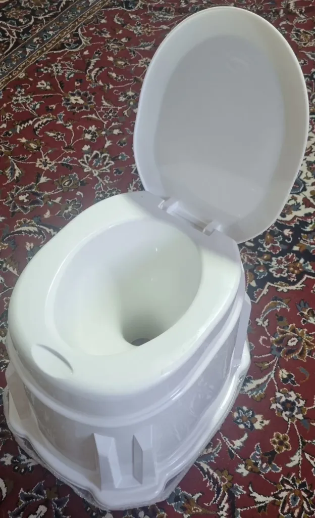 جنس مقاومو محکمی داره مزیتی که داره داشتن دستگیره هست ارتفاع و قدش هم مناسبه،(بعضی مدلها ارتفاعشون بلنده و هرکسی راحت نمیتونه روش بشینه) عیبش اینه که قیف داخلش ارتفاع زیادی نداره ،البته بد نیست ولی مدلهایی که ارتفاع قیفشون تا پایین هست باعث نظافت بهتره کاسه توالت میشن لاستیک کف پایه ها هم داره برای ثابت موندن و سر نخوردن در مجموع بد نیست البته درب رویی هم جنس نازک و ضعیف تری داره و قسمت پایین یه هلالی شکل در چهار ضلع وجود داره البته برای اینه که شما بتونین از اطراف آب بریزین برای نظافت کاسه ولی اگر نداشت بهتر بود که دورش کامل بسته باشه به نظر بنده در کل هنوز استفاده نکردم بعد از استفاده اگر نیاز بود تکمیل میکنم نظرم رو