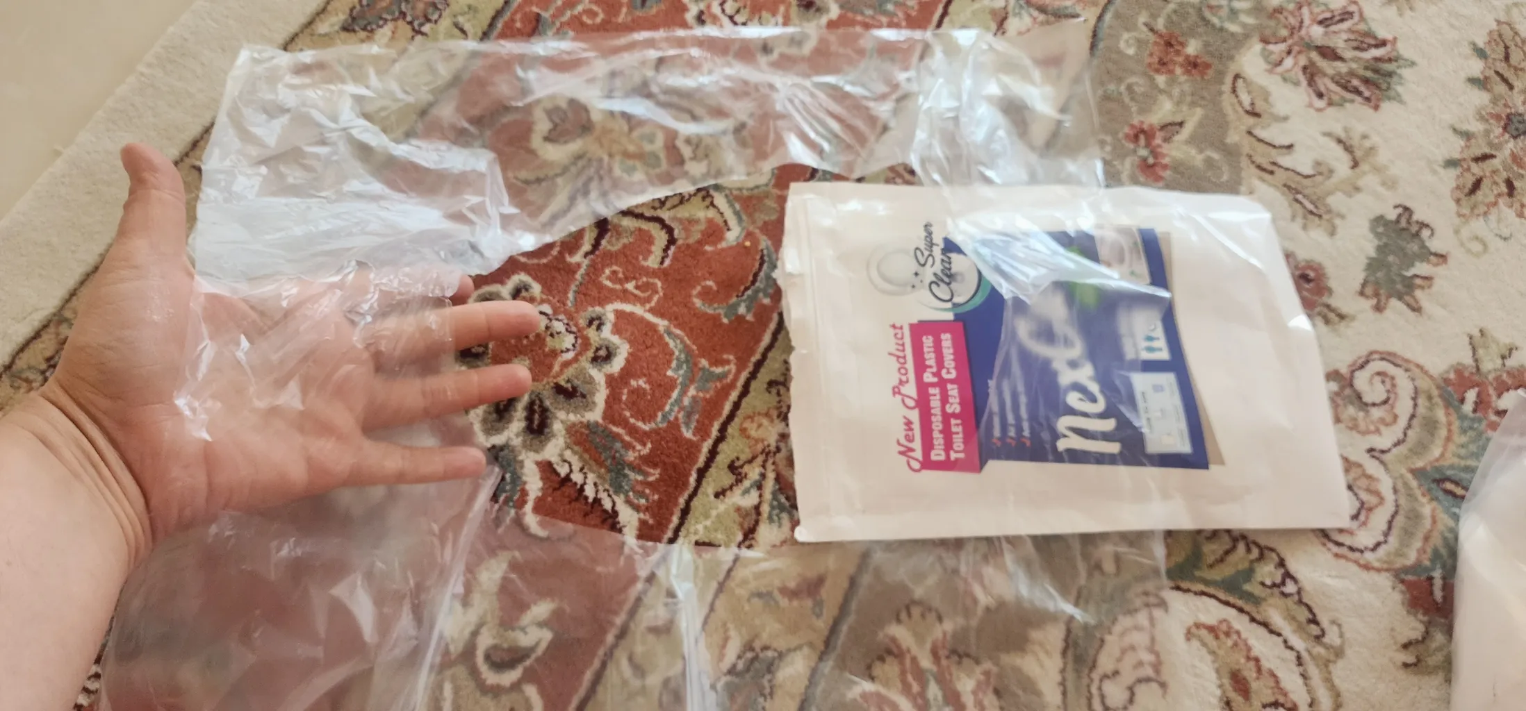 کاش مثل بسته ی دستمال کاغذی میشد تک تک درش بیاری پس مجبورید یا جایی تو دستشویی بگذارید یا قبل از هرگونه تماسی به جایی از توی بسته بندی ای که با منگنه متصل شده که بعدا به حالت پاره درمی آید و شما مجبوری مچاله کنید داخل خودش تا هوا نکشه دربیارید.تصور کنید بدجور دستشویی دارید و دو ساعت باید آورد.اندازه ی دایره اش کوچکتر از دایره ی توالت فرنگی سیار ما بود.ا(این ممکن است برای همه صدق نکند)گر روی سطح خشک پهن کنید ممکن است به بدنتان بچسبد هنگام بلند شدن.نازک بودنش ممکن است برای برخی افراد ناخوشایند باشد