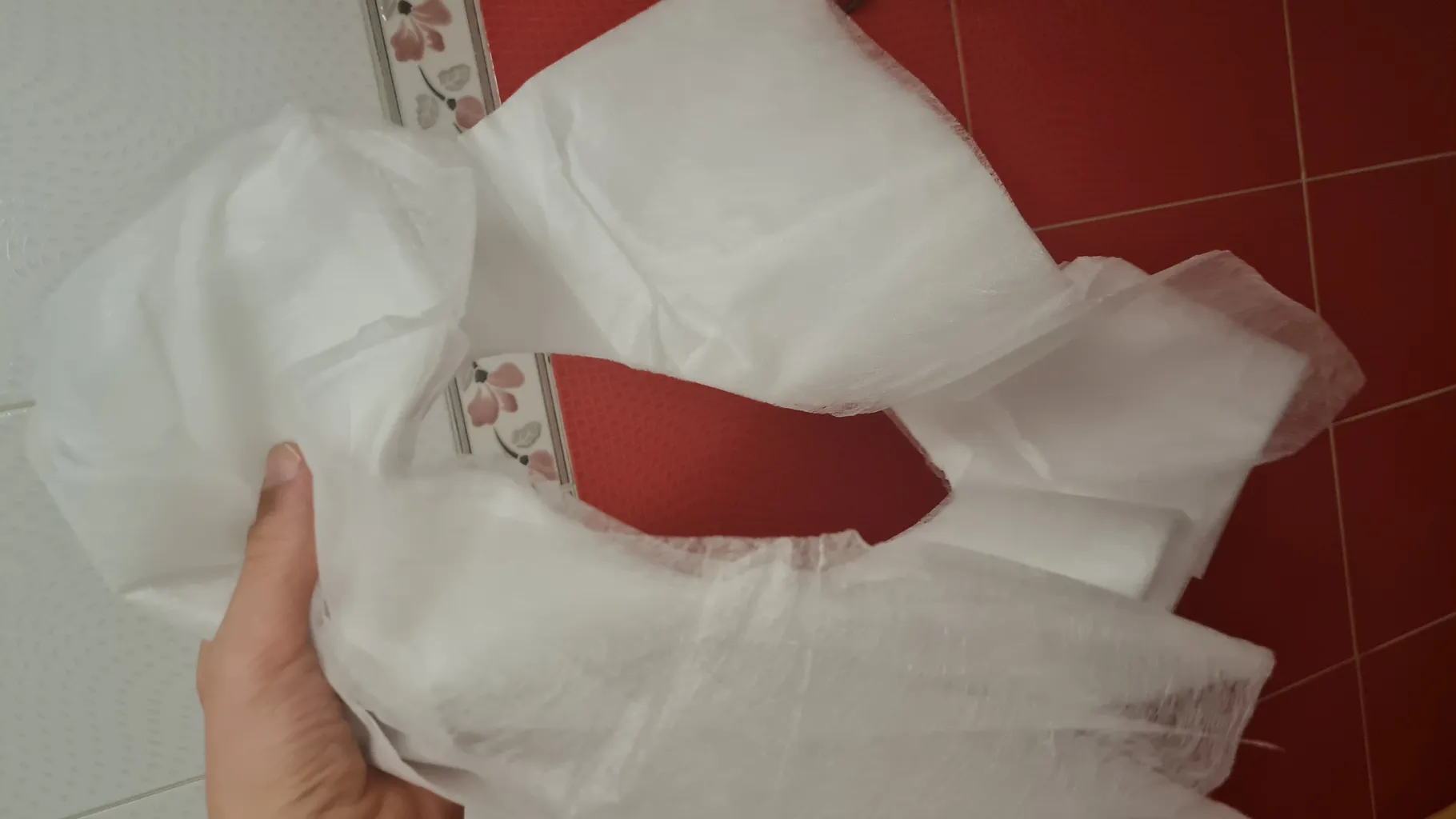 من برای بیمارستان و سفر خریدم . چیز خیلی خاصی نیست . یه پارچه یک لایه که به این شکل برش خورده ولی نسبت به قیمتش خوبه پول پارچه اش بیشتر از اینا درمیاد😂 تعدادش هم زیاده
