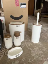 - ⬤ ست سرویس بهداشتی 4 تکه : این ستها معمولاً شامل سطل زباله، جا مایعی، جا مسواکی و فرچه هستند. خریداران به سادگی و زیبایی این ستها اشاره کرده و از آنها به عنوان یک انتخاب مناسب برای سرویس بهداشتی یاد کردهاند. اما برخی از آنها به کیفیت پایین مواد اولیه و عدم وجود سوراخ در جا مسواکی انتقاد کردهاند.