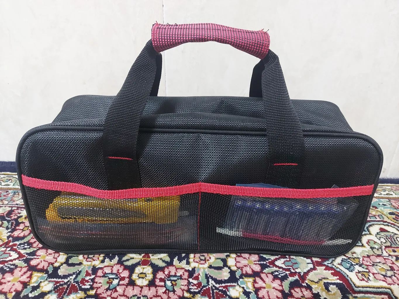 - ⬤ کیف ابزار با بند دوشی : این کیفها به دلیل وجود بند دوشی، حمل و نقل آسانتری را فراهم میکنند. خریداران از راحتی استفاده و طراحی زیبا این کیفها راضی هستند و به عنوان یک گزینه مناسب برای افرادی که نیاز به حمل ابزار در سفرهای کاری دارند، از آنها یاد میکنند. اما برخی از آنها به کیفیت بندها و احتمال پاره شدن آنها در استفاده مکرر انتقاد کردهاند و بیان کردهاند که بندهای ضعیف میتوانند در طول زمان دچار آسیب شوند.