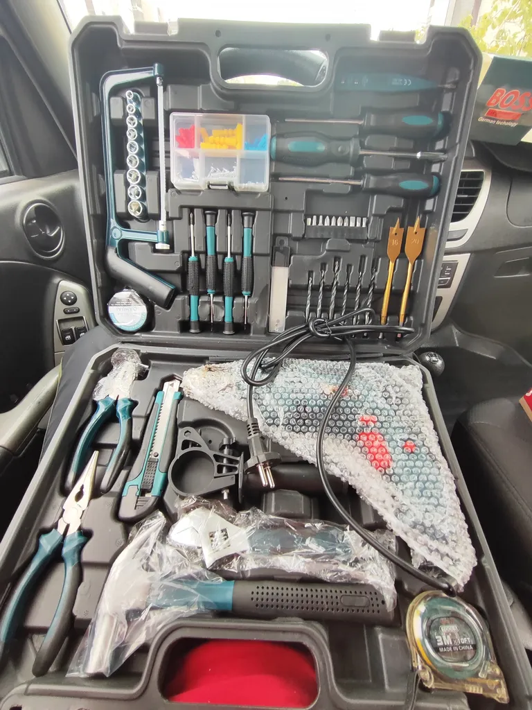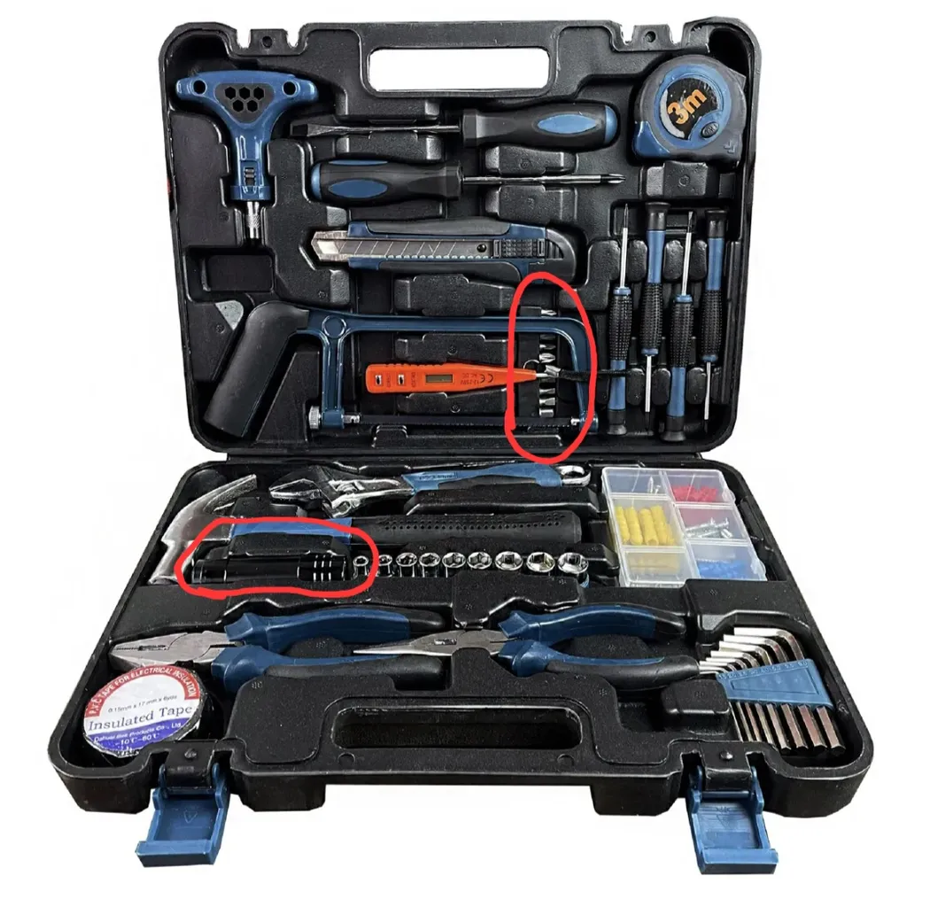 - ⬤ مجموعه ابزار دستی : این نوع مجموعهها شامل ابزارهایی هستند که بدون نیاز به برق کار میکنند، مانند آچار، انبردست و پیچگوشتی. خریداران از این نوع ابزارها به خاطر سادگی و قابلیت استفاده در هر مکان ابراز رضایت میکنند. بسیاری از کاربران به قیمت مناسب و عدم نیاز به منبع برق اشاره کردهاند. اما برخی از خریداران به زمانبر بودن کارها و نیاز به نیروی بیشتری برای استفاده از این ابزارها انتقاد کردهاند.