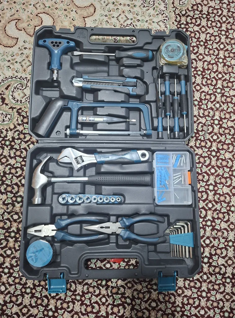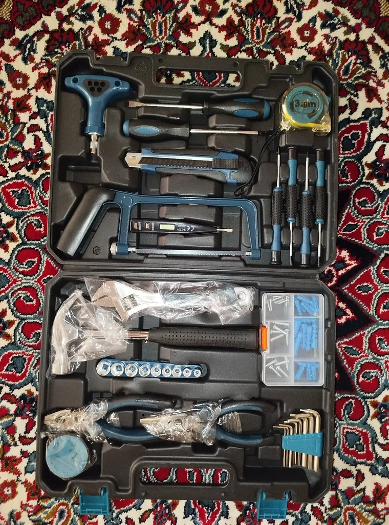 - ⬤ مجموعه ابزار خانگی : این نوع مجموعهها معمولاً شامل ابزارهای پایه و ضروری برای کارهای روزمره در منزل هستند. خریداران به کیفیت و کارایی این ابزارها توجه زیادی دارند. بسیاری از خریداران از کیفیت خوب و طراحی جمع و جور این مجموعهها ابراز رضایت کردهاند و آنها را برای کارهای ساده و روزمره مناسب میدانند. با این حال، برخی از کاربران به کیفیت پایین برخی ابزارها اشاره کرده و معتقدند که این ابزارها برای کارهای سنگین و حرفهای مناسب نیستند.