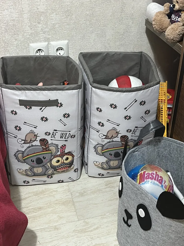 - ⬤ جعبههای پارچهای : این نوع جعبهها به دلیل قابلیت شستشو و طراحیهای متنوع و زیبا بسیار مورد استقبال قرار گرفتهاند. خریداران به راحتی در استفاده و قابلیت جمع شدن آنها اشاره کردهاند. این جعبهها معمولاً دارای دستههایی برای حمل آسان هستند و میتوانند به عنوان دکوراسیون اتاق کودک نیز استفاده شوند. با این حال، برخی از آنها به نازکی جنس و احتمال آسیبپذیری آنها در برابر فشار و وزن زیاد انتقاد کردهاند. همچنین، برخی از خریداران به کیفیت دوخت و احتمال پاره شدن در طول زمان اشاره کردهاند.