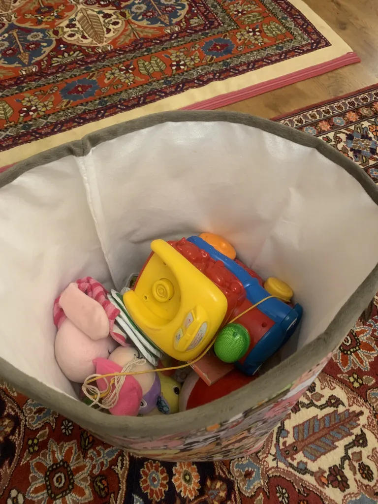 - ⬤ جعبههای تاشو : این نوع جعبهها به دلیل قابلیت جمع شدن و اشغال فضای کم در زمان عدم استفاده، بسیار محبوب هستند. خریداران به راحتی در استفاده و قابلیت حمل آنها اشاره کردهاند. این جعبهها معمولاً دارای طراحیهای زیبا و رنگارنگ هستند که به دکوراسیون اتاق کودک کمک میکند. با این حال، برخی از خریداران به نازکی جنس و احتمال آسیبپذیری آنها در برابر وزن زیاد انتقاد کردهاند.