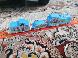 قطار و ریل ؛ بچه ی من قطار و ریلی دوست داره که خودش با دست حرکتش بده قطار رو.بخاطر همین سه بسته سفارش دادم،ریل ها رو سر هم کردم،ریل های نیم دایره رو هم سر هم کردم و دوتا ریل دایره هم ساختیم.البته آبی سفارش داده بودم،سبز ارسال کردن🤨باز خوبه سه بسته رو یکرنگ فرستادن😒