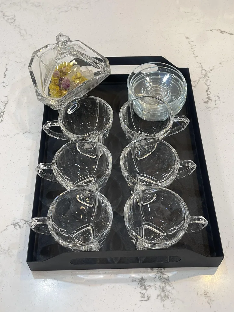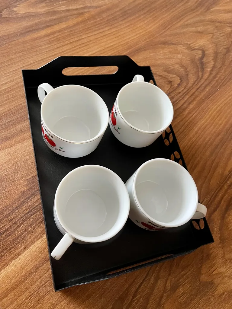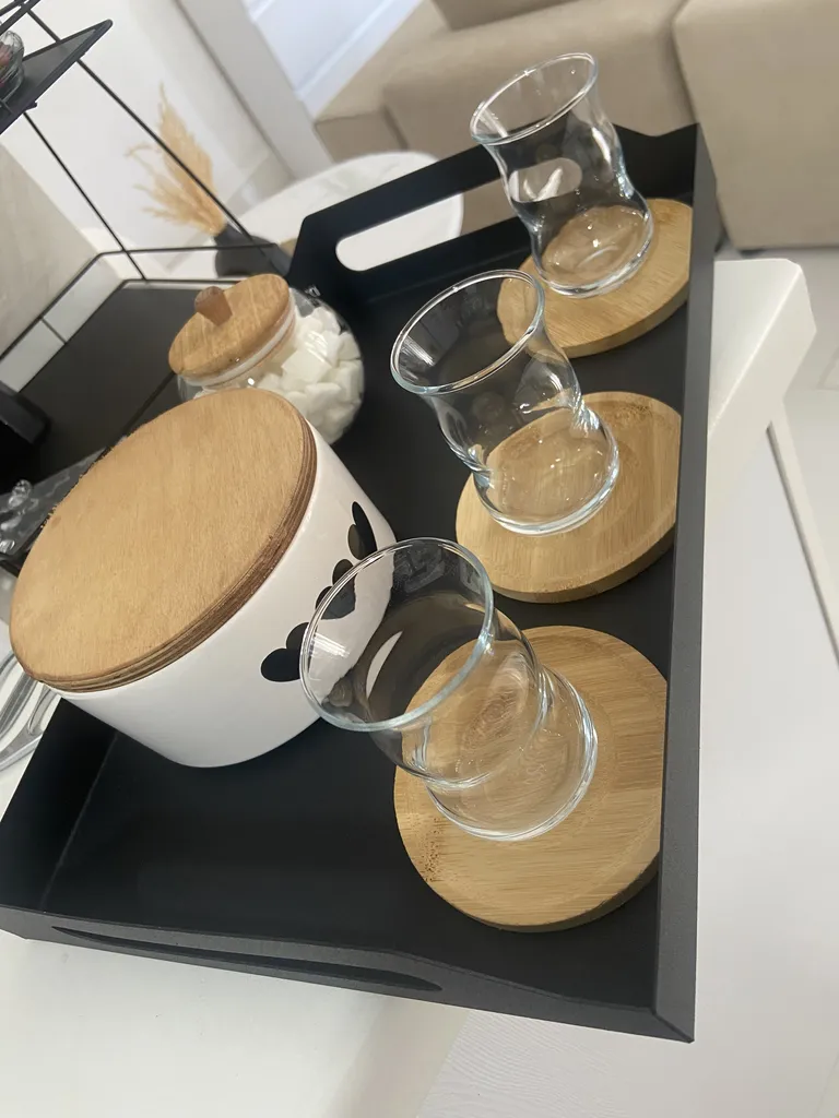 این تبلیغی که برای این سینی کردم واقعا ارزشمند هست بسیار راضی بودم با کیفیت و شیک و ساده و خوشگل با بسته بندی خیلی شیک تر من با لیوان های مشکی ست کردم عکس گذاشتم عالیه از نگاه من