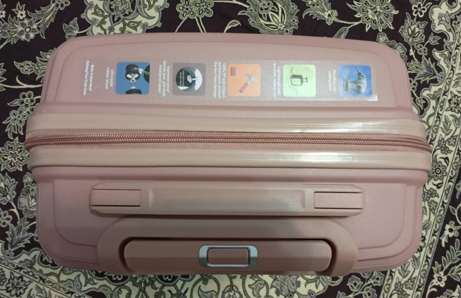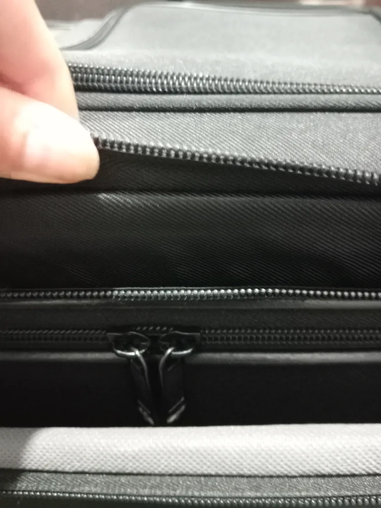 - ⬤ زیپها : کیفیت زیپها بسیار مهم است. زیپهای دوگانه معمولاً ایمنتر و مقاومتر هستند. خریداران به زیپهای با کیفیت و محکم اشاره کردهاند که از باز شدن ناخواسته چمدان جلوگیری میکند.