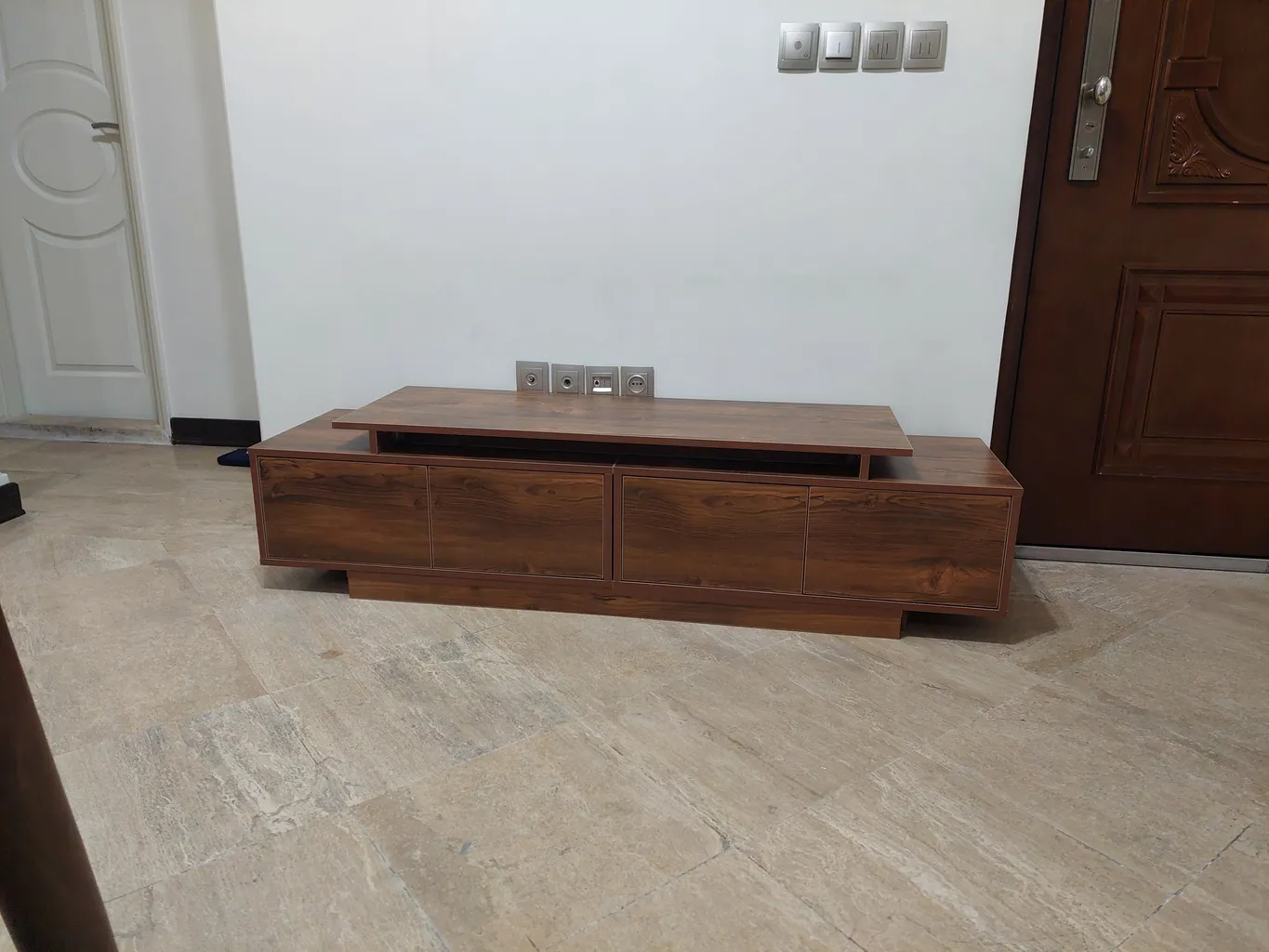 - ⬤ نوع روکش : روکشهای مختلفی مانند وکیوم، ملامینه و PVC برای پوشش میزهای تلویزیون استفاده میشود. هر کدام از این روکشها ویژگیهای خاص خود را دارند. خریداران به روکشهای با کیفیت و مقاوم در برابر خط و خش تمایل بیشتری دارند.