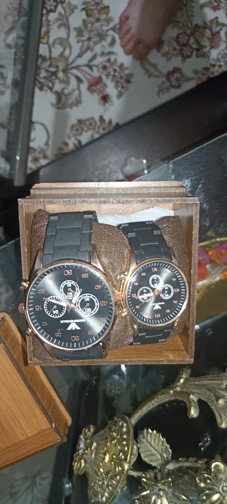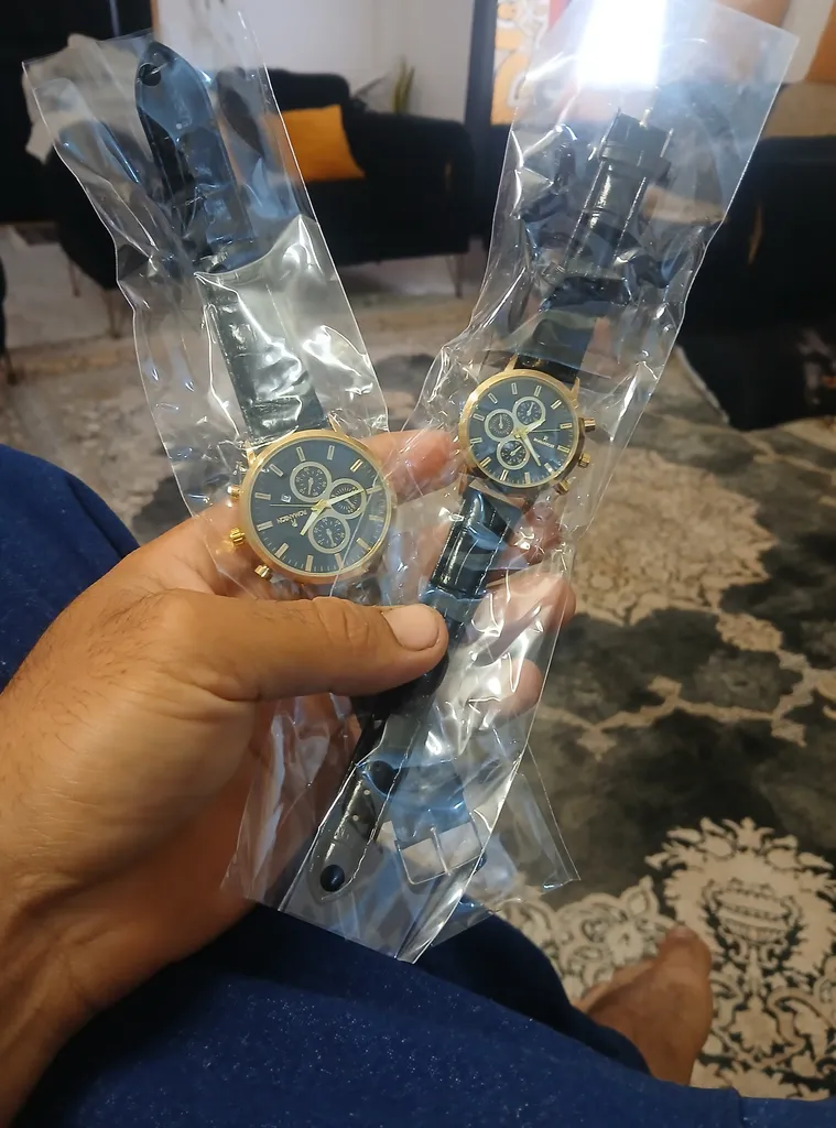 - ⬤ ست ساعتهای چرم : این ستها معمولاً دارای بند چرم و طراحی کلاسیک هستند. خریداران به راحتی و زیبایی این ساعتها اشاره کردهاند و از کیفیت چرم استفاده شده در آنها راضی هستند. بسیاری از خریداران به این نکته اشاره کردهاند که بند چرم به مرور زمان نرمتر و راحتتر میشود. اما برخی از خریداران به مشکلاتی مانند عدم مقاومت در برابر آب و نیاز به مراقبت بیشتر از بند چرم اشاره کردهاند و احساس کردهاند که این ساعتها ممکن است در شرایط مرطوب آسیب ببینند.