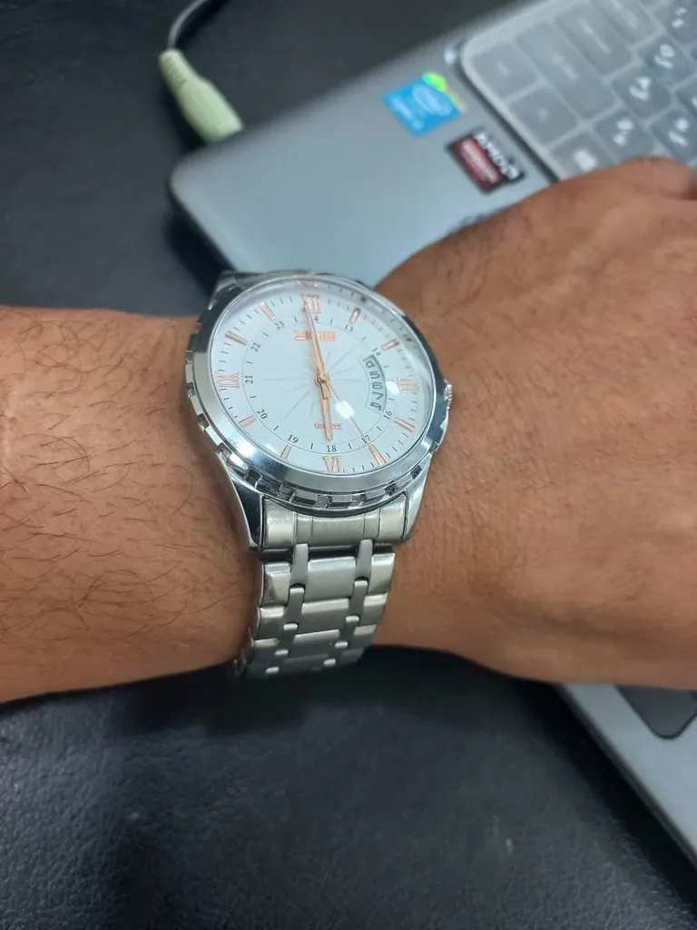 - ⬤ استیل ضد زنگ : این نوع جنس بدنه یکی از محبوبترین و رایجترین گزینهها در ساعتهای عقربهای است. استیل ضد زنگ به دلیل مقاومت بالا در برابر زنگزدگی و خط و خش، دوام و ماندگاری بالایی دارد. همچنین، این جنس به راحتی تمیز میشود و ظاهری براق و شیک به ساعت میبخشد. ساعتهای با بدنه استیل معمولاً در مدلهای لوکس و روزمره استفاده میشوند.