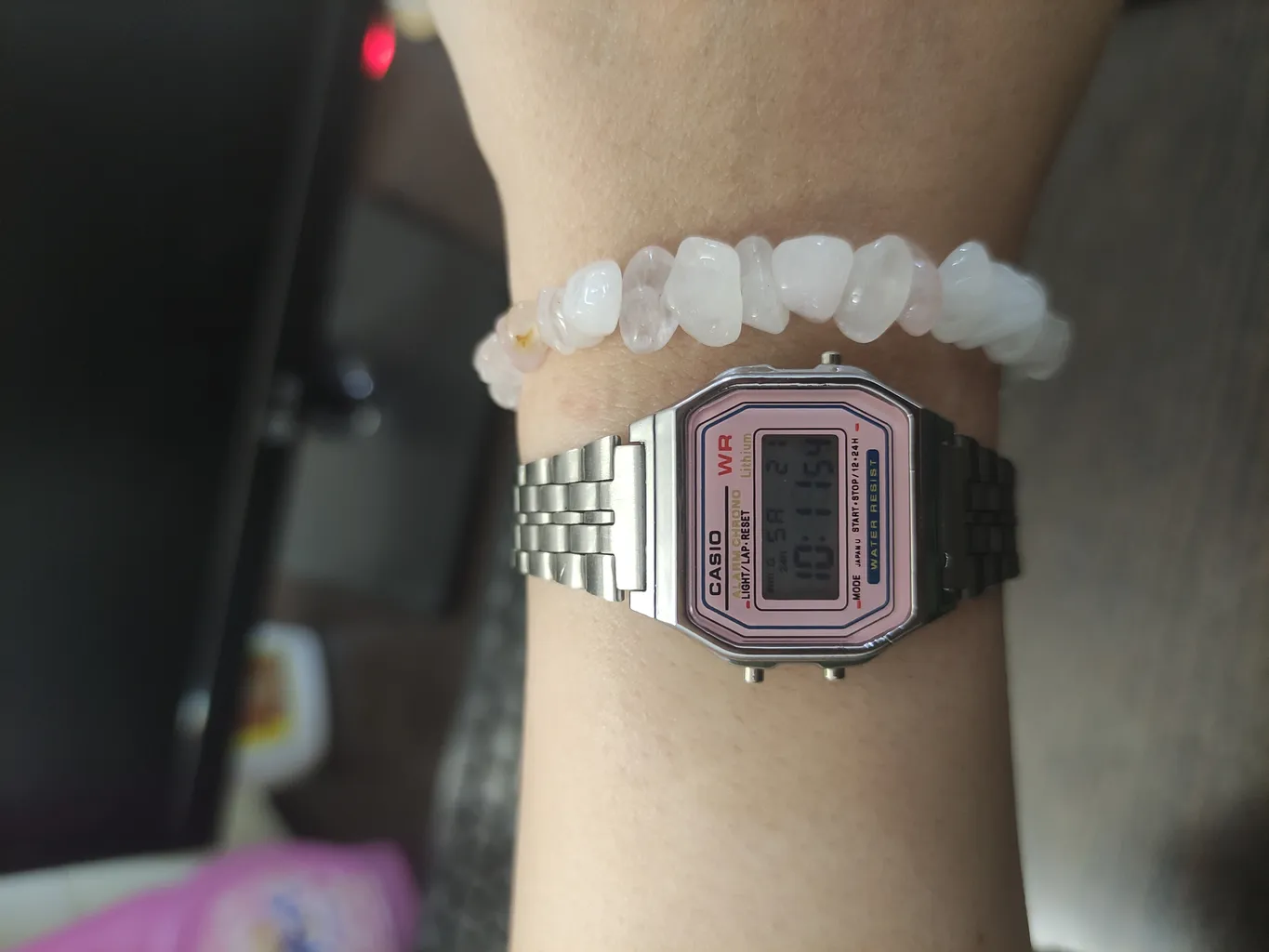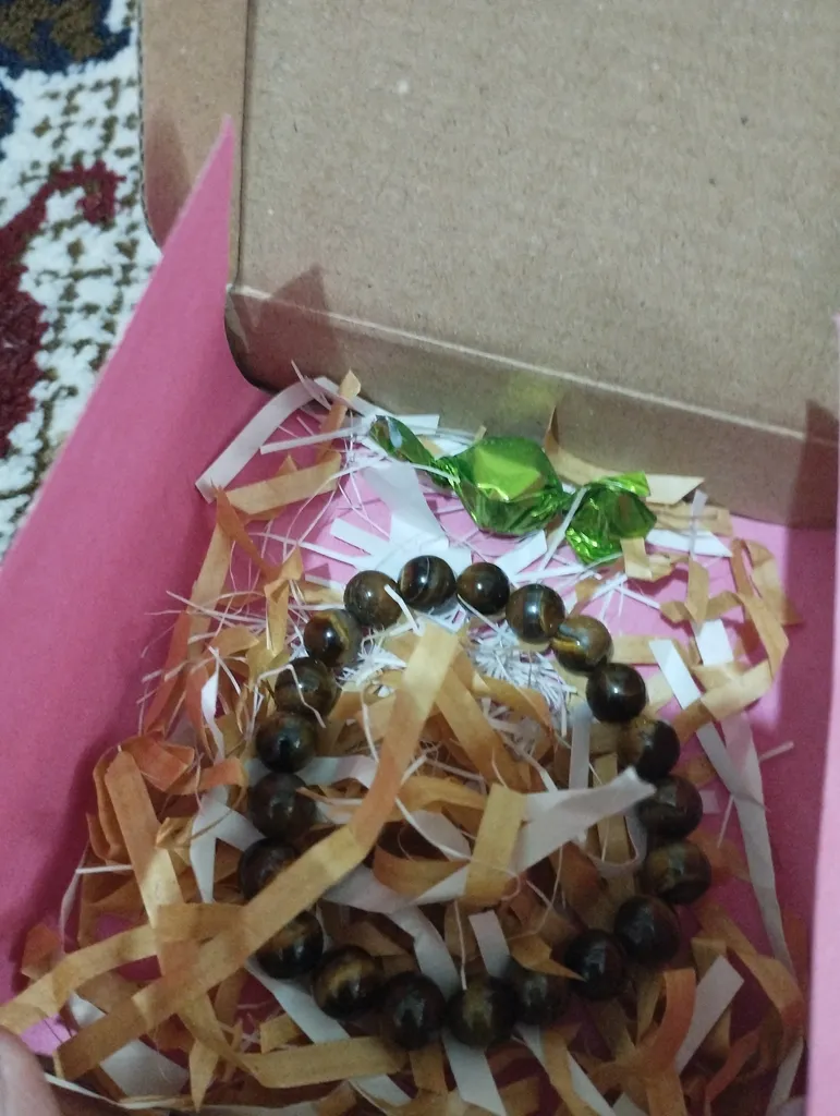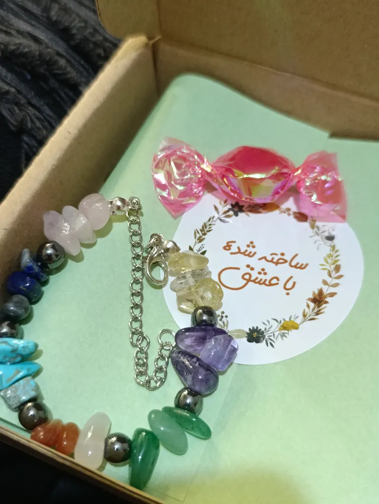 از نظر ظاهری قشنگه و بسته بندی جالبی داشت، متاسفانه بعد چندروز زنجیرش رنگش تغییر کرد ک باعث شد به سنگ بودن مهره هاش هم شک کنم، عکسای کنار ساعت جدید و اون دو عکس دیگ واس روز اول خرید هستش،نمیدونم تلقین یا حس میکنم رنگ مهره هاش کمرنگ تر شده