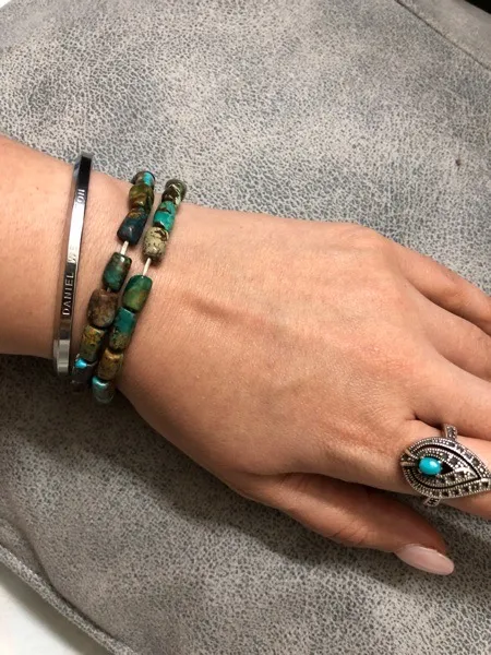 مریم فروحی : من فکر نمیکردم بند وسطش پلاستیکی باشه این باعث شده دستبند فرم منظمی نداشته باشه و تاب خورده ولی سنگش خوش رنگه و تقریبا شبیه عکس اصلی