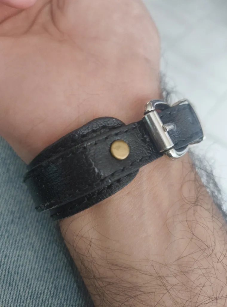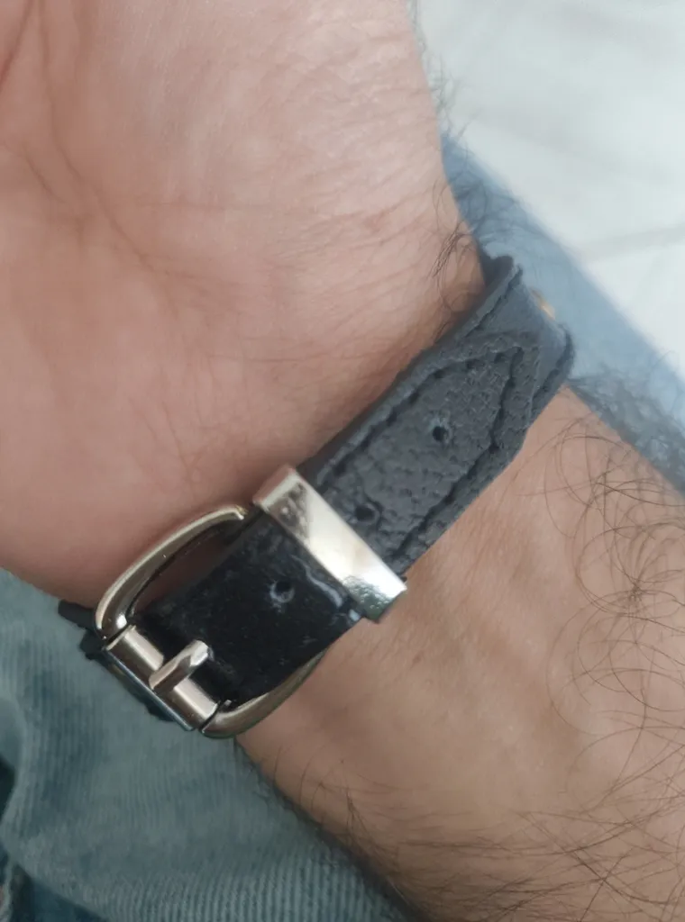 این دست بند زیبا هست ولی بر خلاف تصویر چرم ضخیم و یک تکه نداشت بلکه دو لایه چرم نازک روی هم کشیدند و خیلی ناشیانه حاشیه اون رو چشب زدند که اصلا خوشم نیومد. من بیشتر واسه ضخامت و حاشیه ظریفش شیفته این محصول شدم ولی اون چیزی که میخواستم نبود.