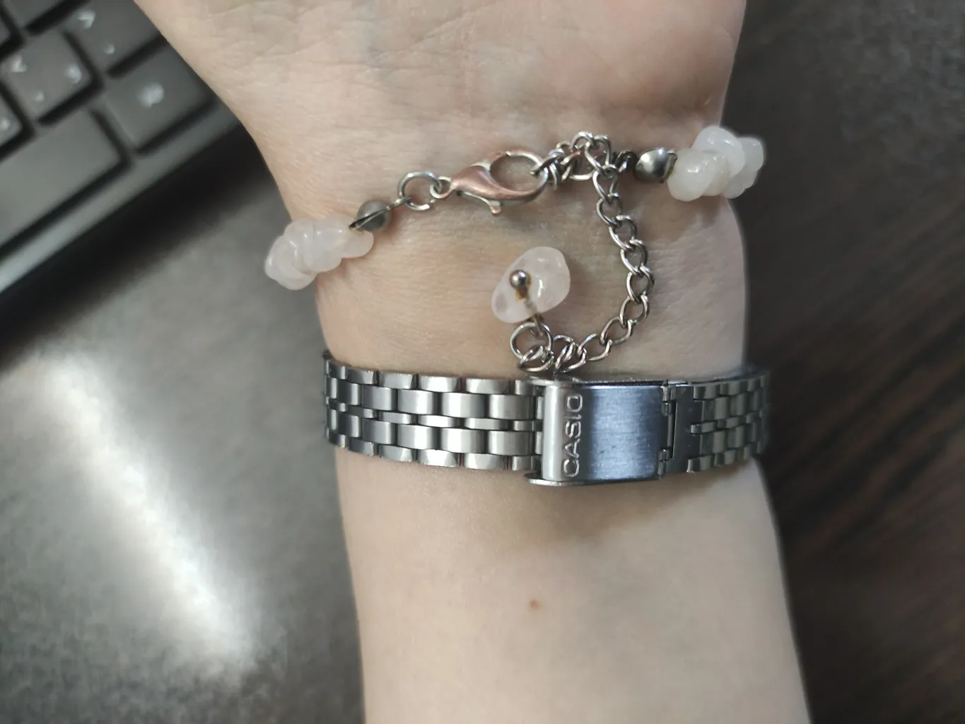 معصومه قاسمی : از نظر ظاهری قشنگه و بسته بندی جالبی داشت، متاسفانه بعد چندروز زنجیرش رنگش تغییر کرد ک باعث شد به سنگ بودن مهره هاش هم شک کنم، عکسای کنار ساعت جدید و اون دو عکس دیگ واس روز اول خرید هستش،نمیدونم تلقین یا حس میکنم رنگ مهره هاش کمرنگ تر شده