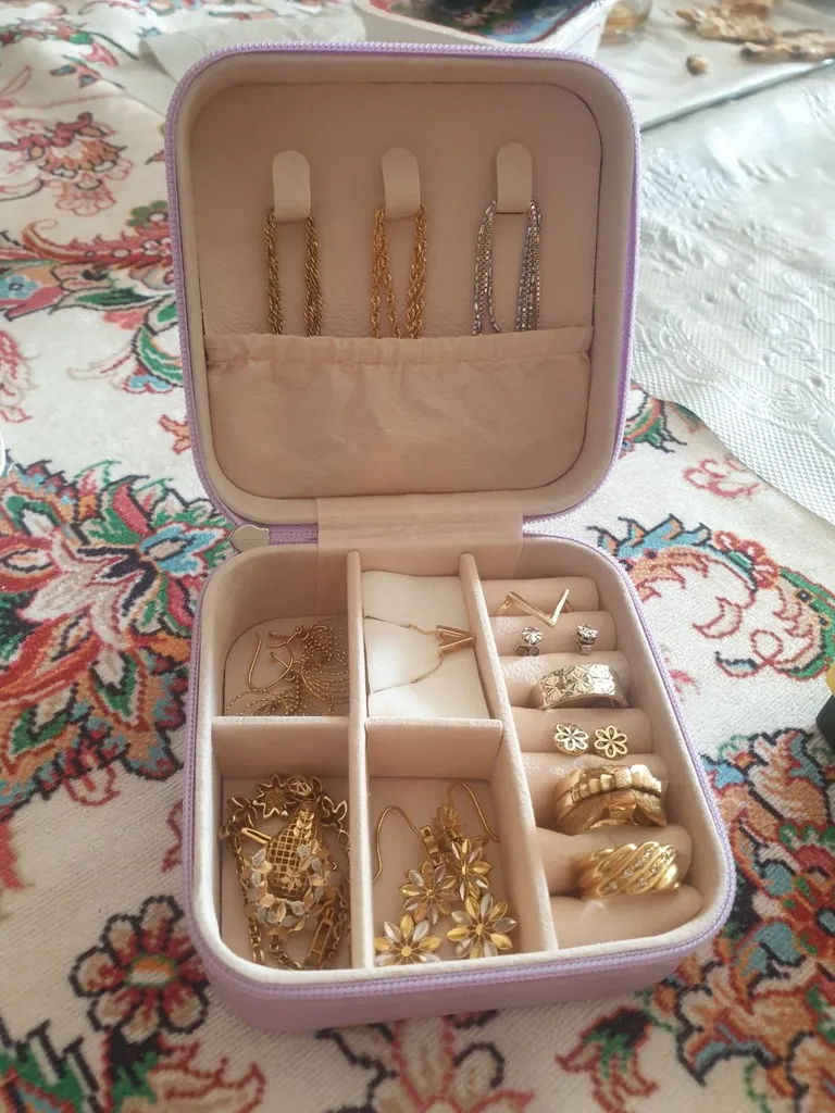 صورتیش خیلی خوشگله...جنسشم نسبتا خوبه و باکلاسه. من دنبال همچین چیزی بودم که به بدلیجاتم نظم بده و وقتی وسایلمو توش گذاشتم خیلی ذوق کردم.فقط این کار کیف جواهرات مسافرتیه و اگه خیلی وسایلتون زیاده شاید براتون کوچیک باشه.فک کنم منم باید یه کم جلو خودمو بگیرم و کمتر بدلیجات بخرم:) ساعتامم توش جا نشد