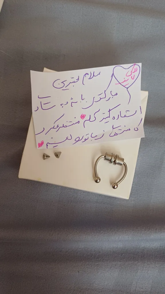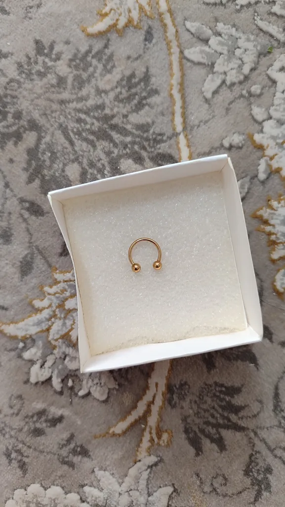 خریدار بدون نام : پیرسینگ فیک ؛ من نقره ای سفارش دادم طلایی ارسال شد دوستان توی نظرات گفته بودن خیلی بزرگه ولی من خریدم و واقعا خیلی غیر طبیعیع توی دماغ چون یکی از دوستای من اون قسمت از بینیشو سوراخ کرده بود و من دارم با مقایسه کردن اون میگم